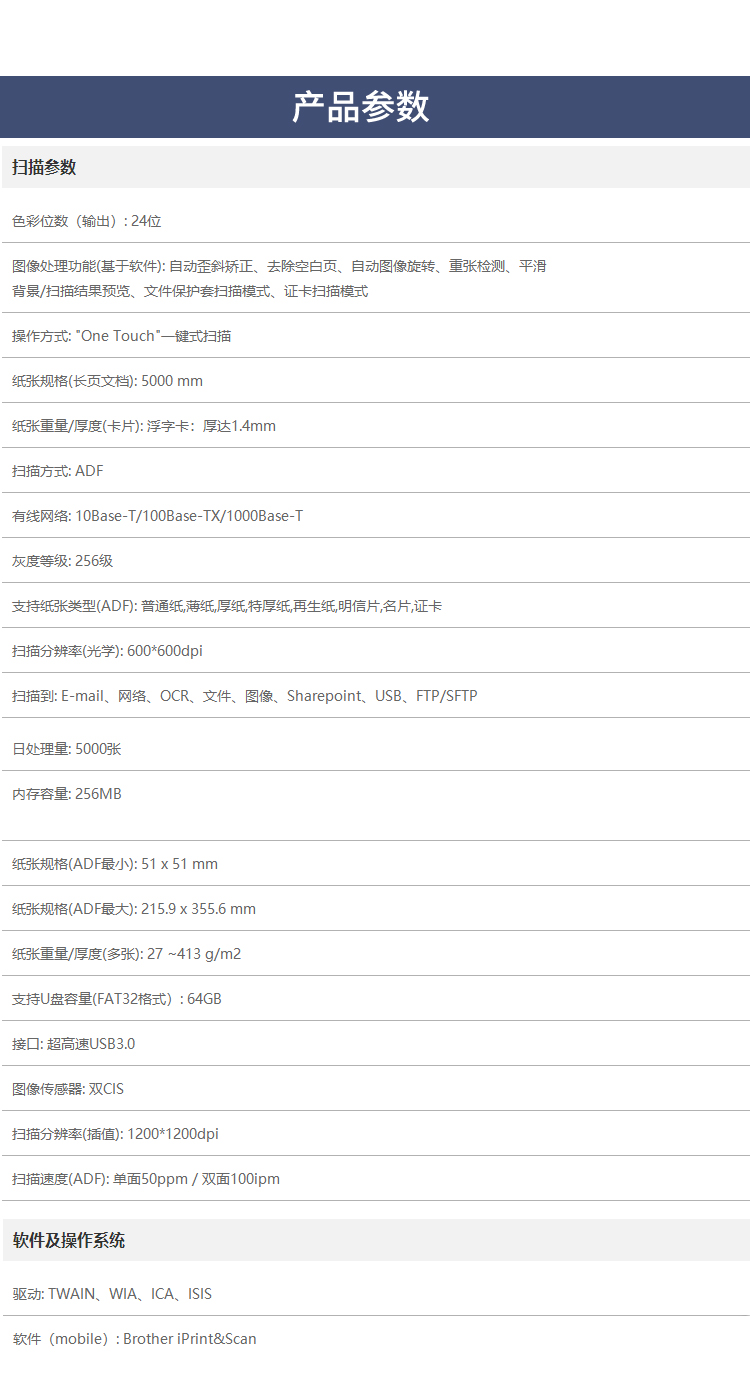 兄弟(brother)ADS-3000N 扫描仪 高效专业扫描仪 内置有线网络