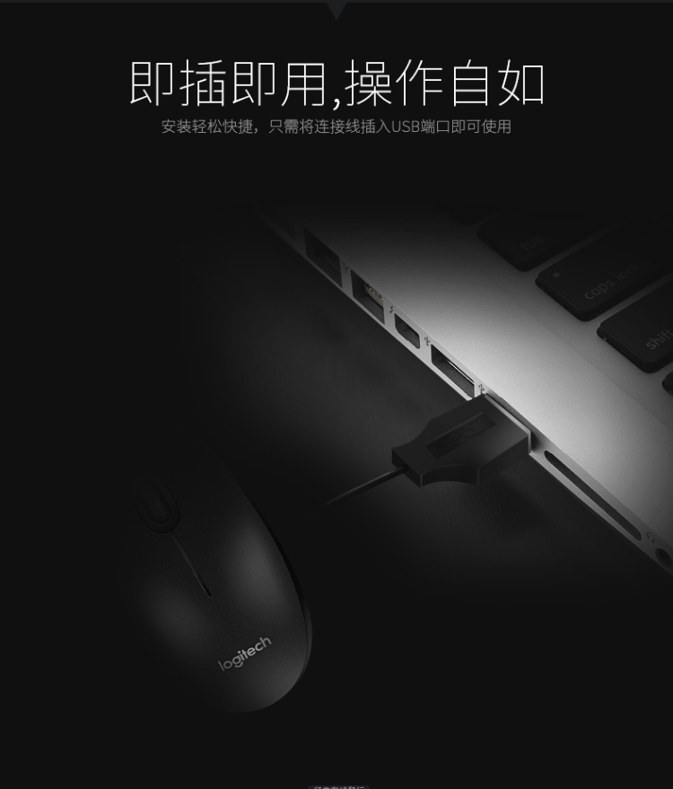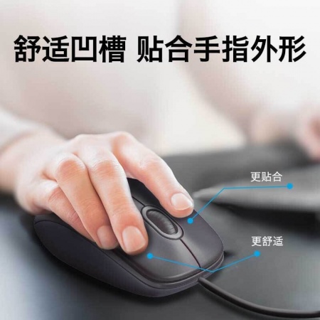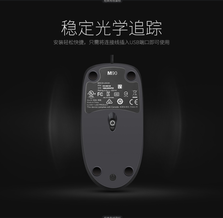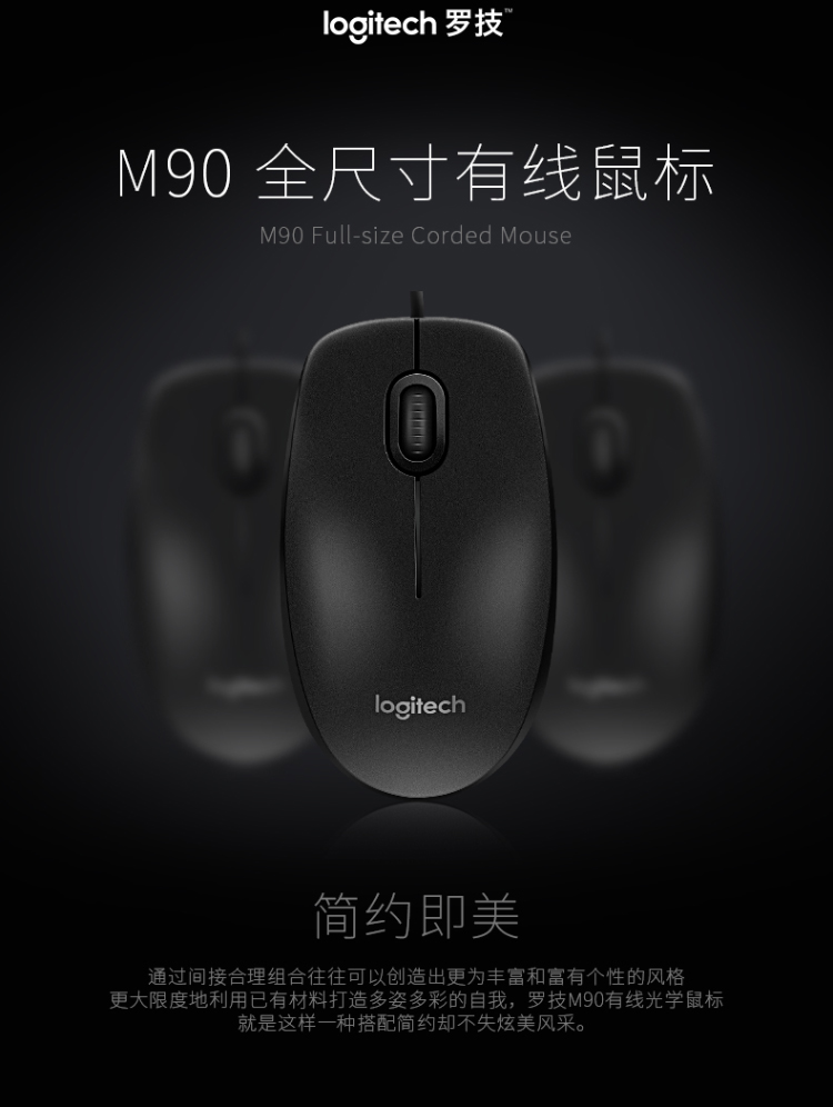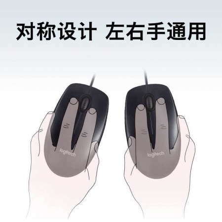 罗技(Logitech)M90鼠标,有线鼠标, 左右手通用对称鼠标 USB即插即用 黑色