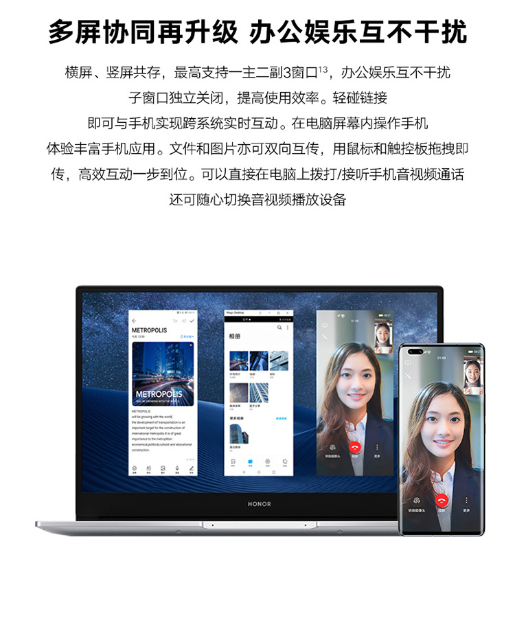HONOR荣耀笔记本MagicBook14 2021款11代轻薄本学生商务办公笔记本电脑 14.0 i5-1135G7 16G 512G独显