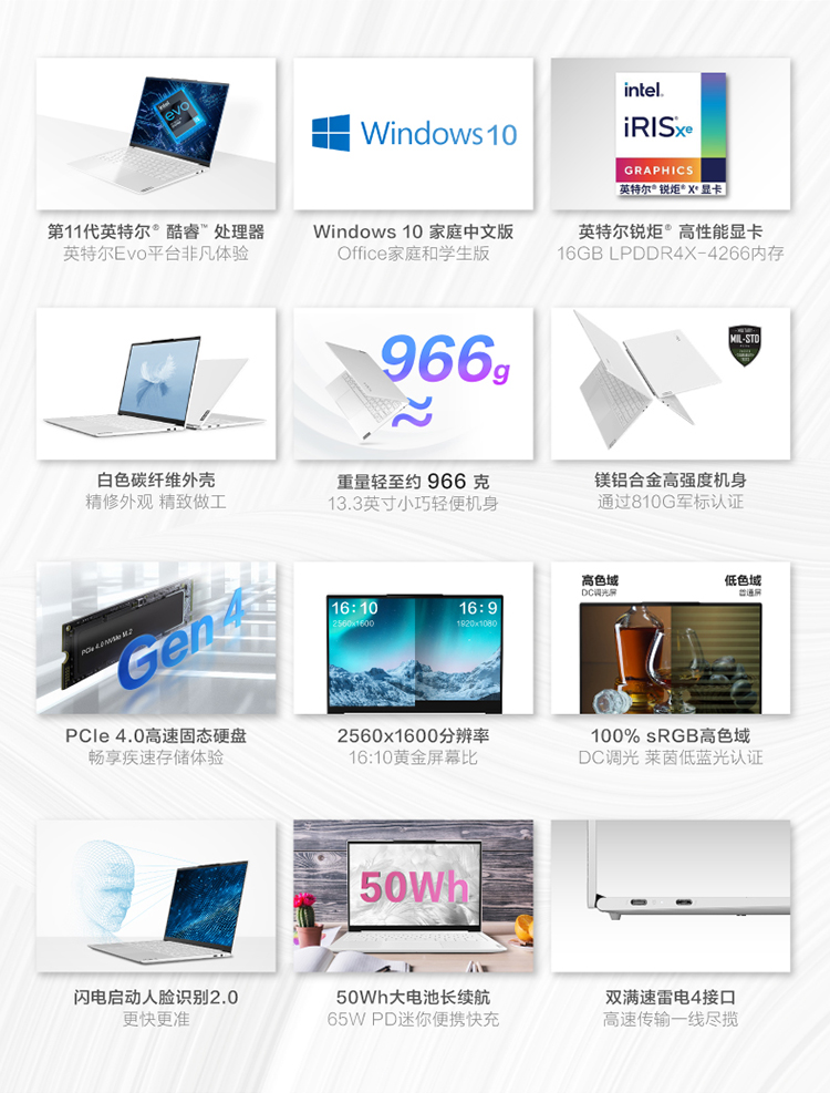 联想 Lenovo YOGAPro 13s 2021款超轻薄商务办公本 13.3英寸全面屏笔记本电脑 i5-1135G7 16G 512G 2.5K 白