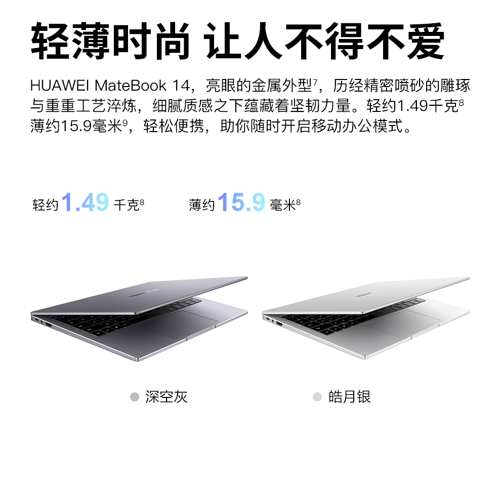 华为笔记本电脑 MateBook 14英寸笔记本 皓月银|I5-10210U 8G 512G固态独显