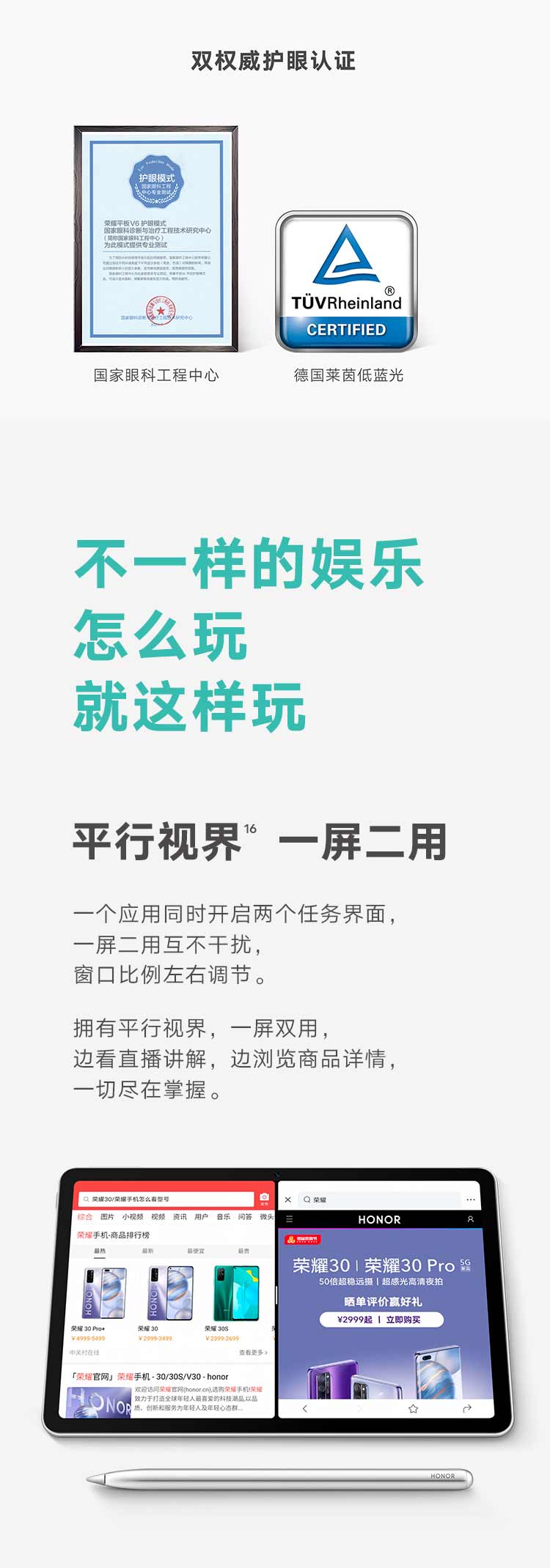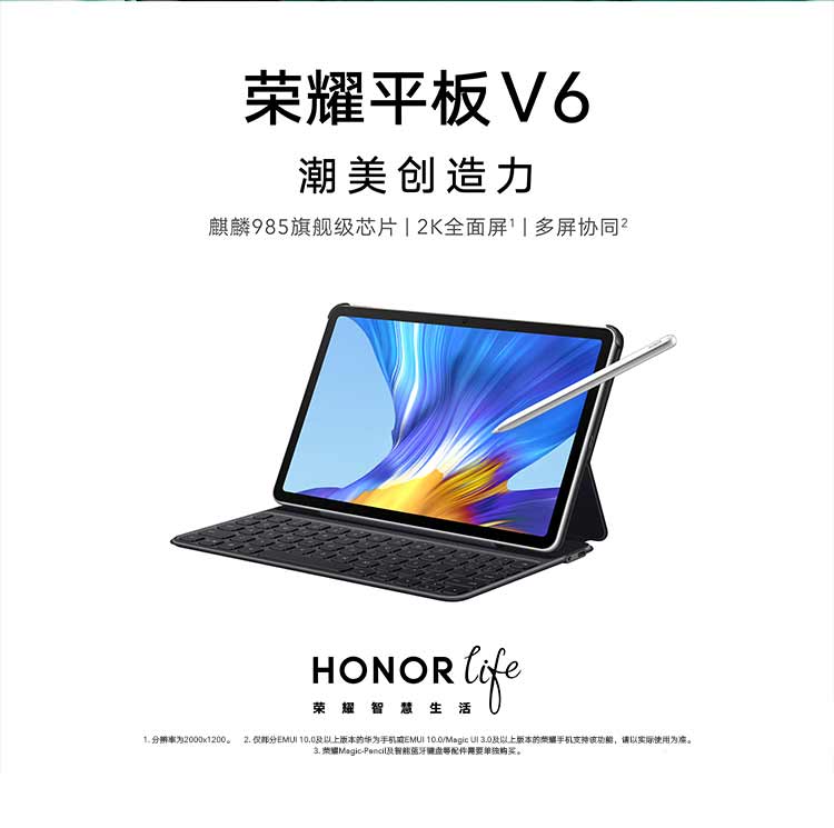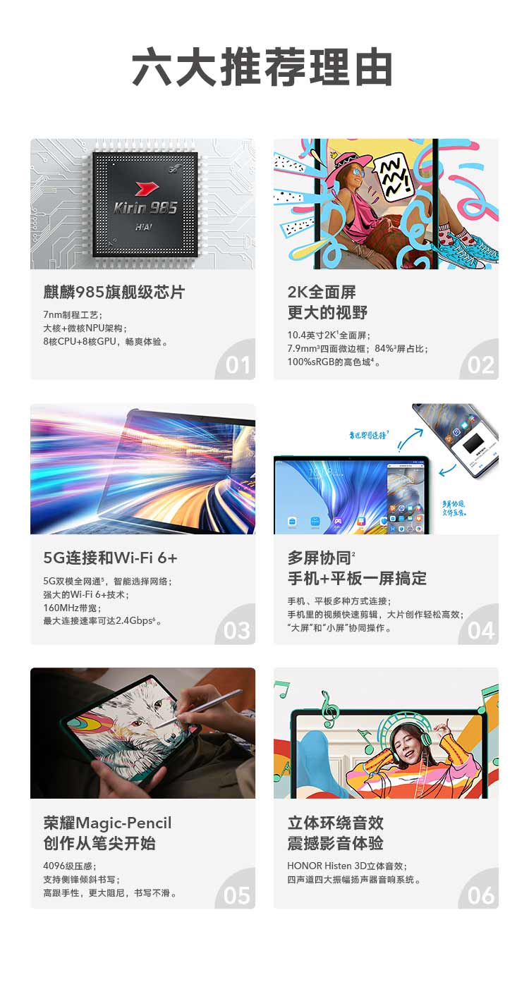 荣耀平板V6 10.4英寸 麒麟985芯片 2K全面屏 影音娱乐游戏学习办公平板电脑 6+128GB 5G版 钛空银