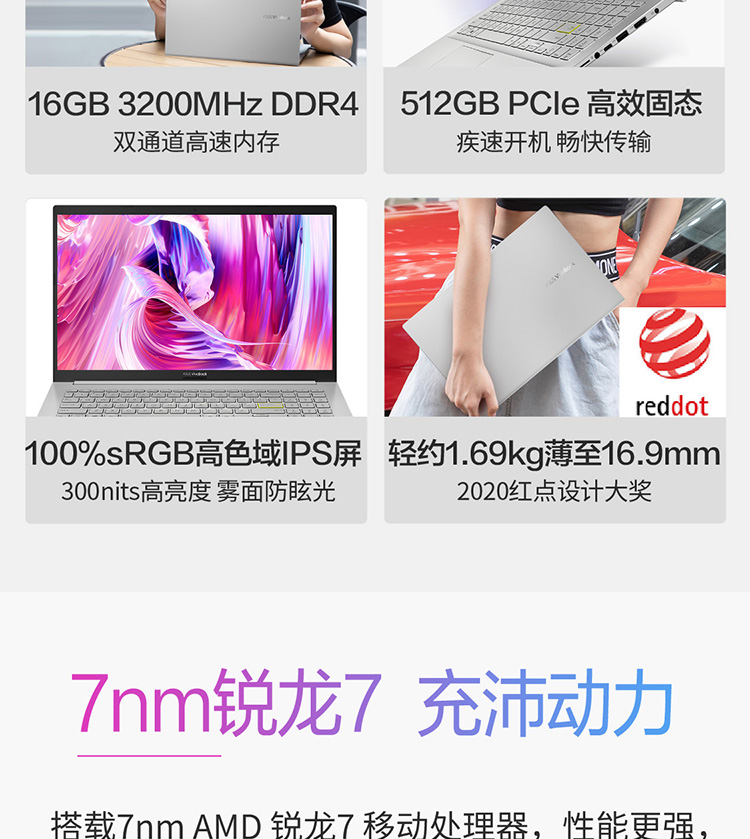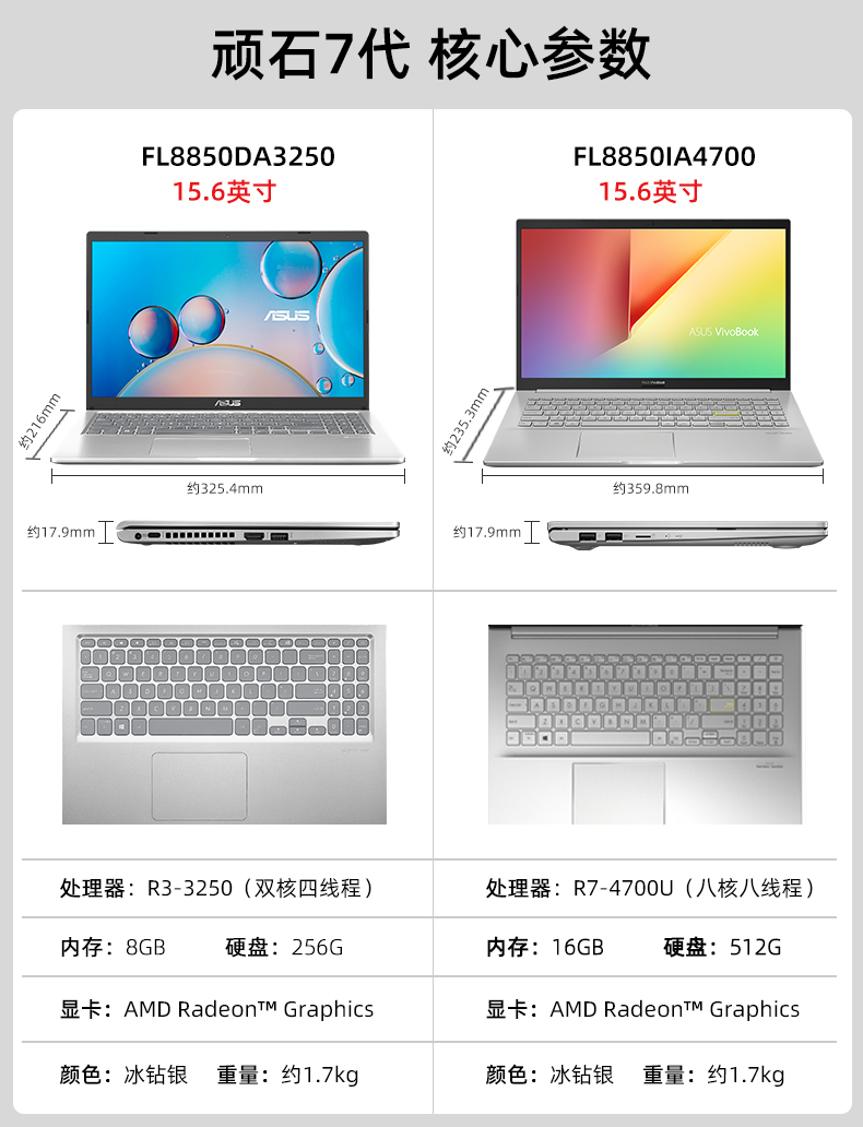华硕(ASUS)顽石7代FL8850新锐龙R3/R7 15.6英寸游戏商务办公轻薄手提笔记本电脑 R3-3250U 8G内存256G固态
