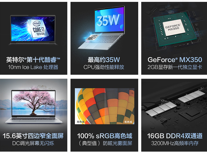 联想(Lenovo)小新15 2020性能版轻薄本 15.6英寸全面屏学生笔记本电脑(i5-1035G1 16G 512G MX350高色域 )银