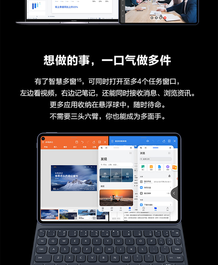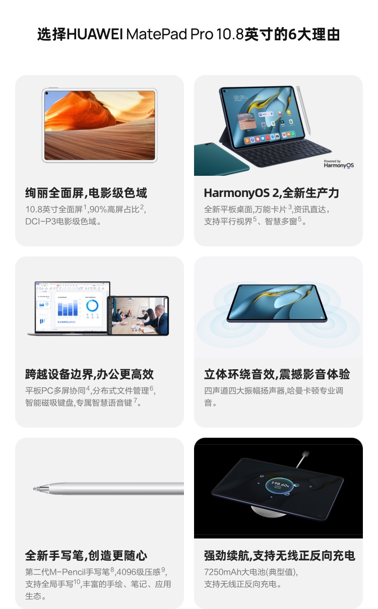 华为 MatePad Pro 10.8 便携式计算机 2021款鸿蒙HarmonyOS 娱乐办公学习平板电脑8+256GB WIFI青山黛 键盘+笔