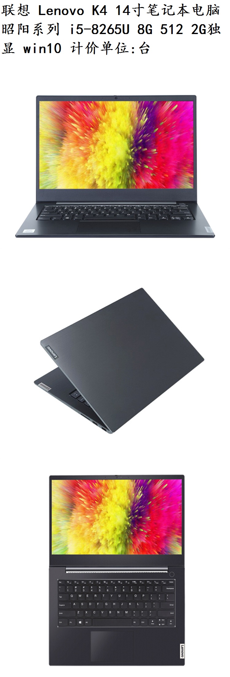 联想 K4 便携式计算机 14寸笔记本电脑 昭阳系列 i5-8265U 8G 512 2G独显 win10