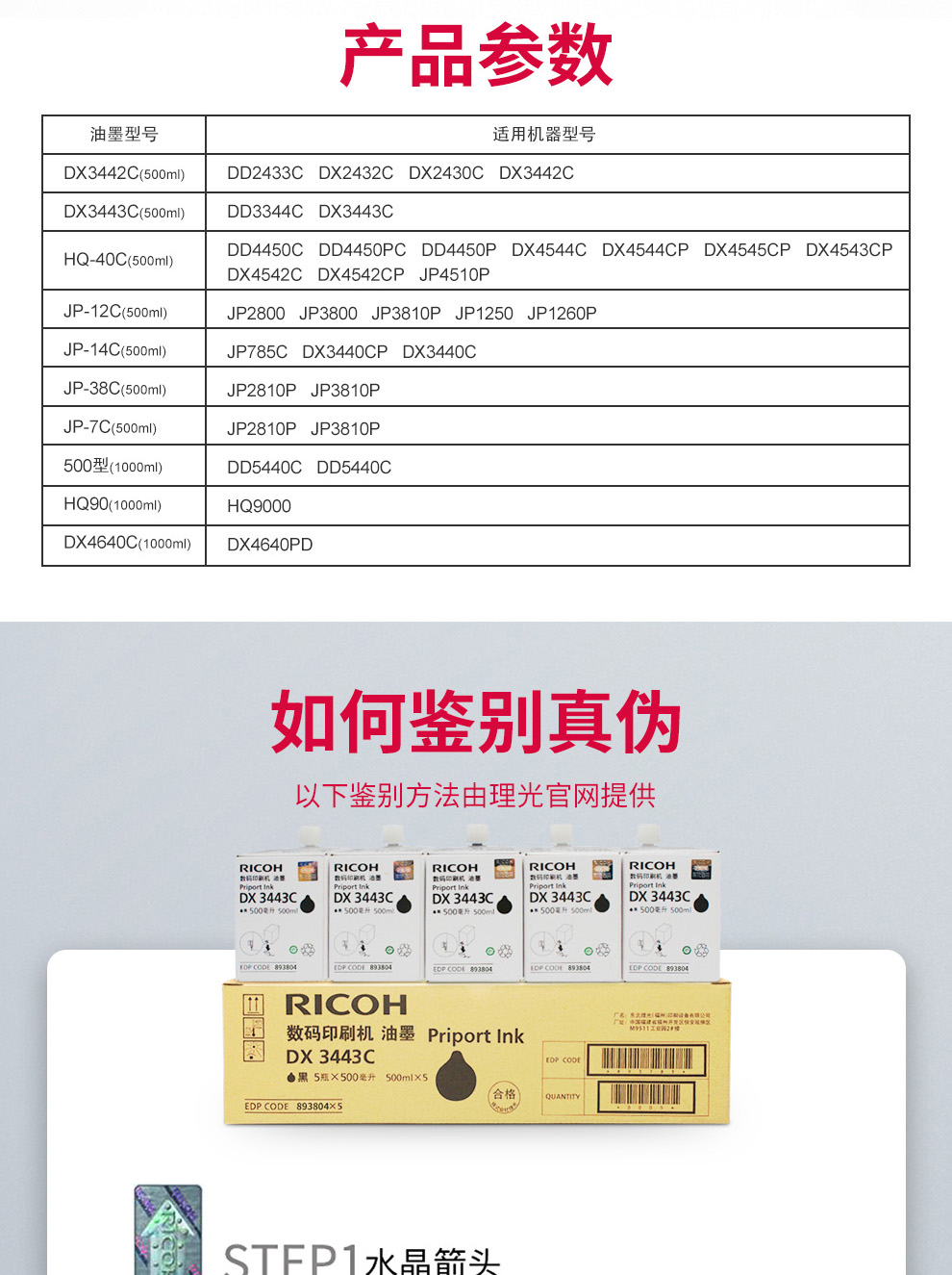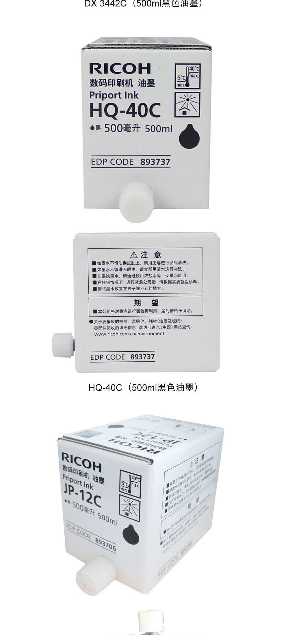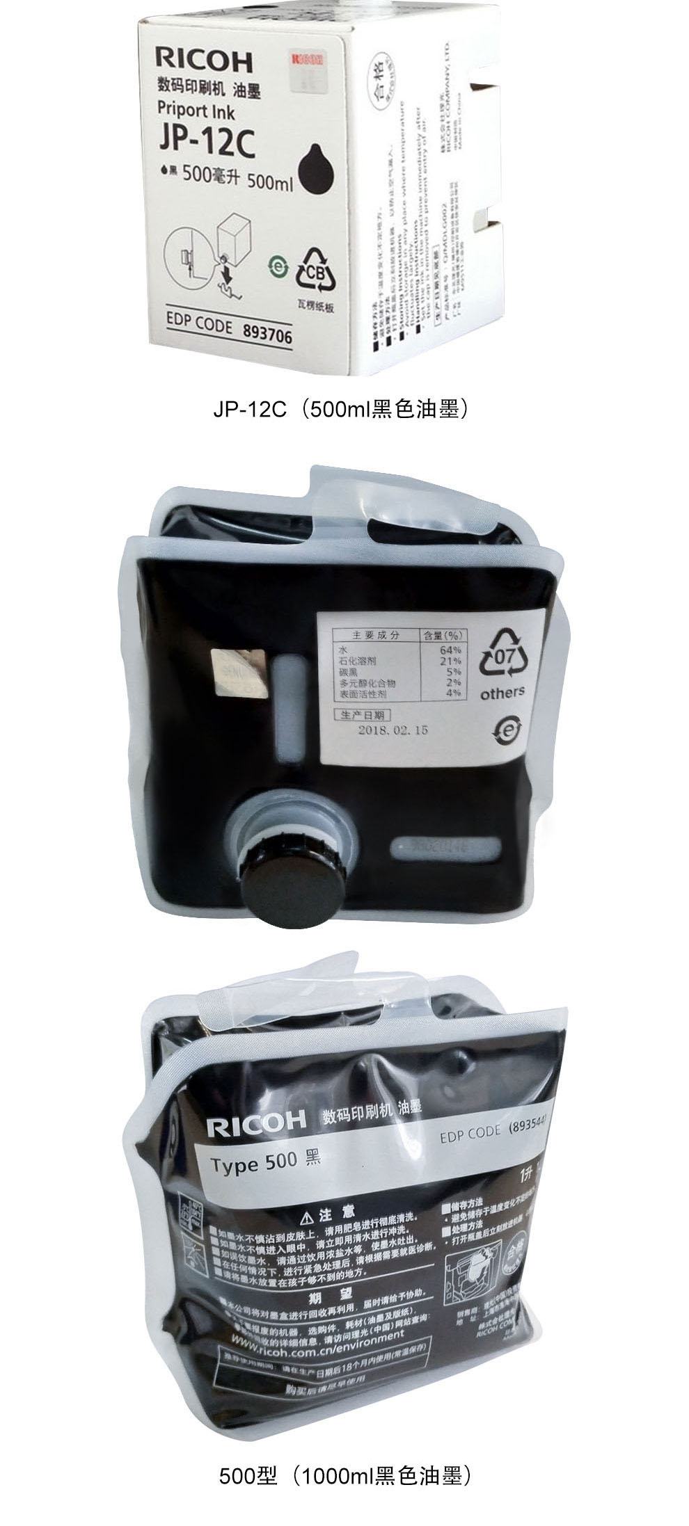 理光(Ricoh) 数码印刷机油墨 一体化速印机油墨 黑油墨 JP-12C(500cc/瓶) 一瓶 理光JP1260 JP2800 3800