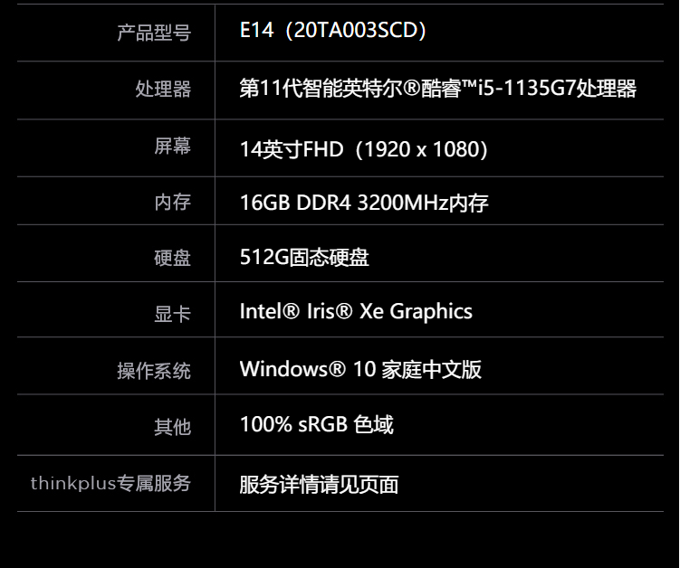 联想ThinkPad E14 2021 居家办公本 酷睿版 英特尔酷睿i5 14英寸轻薄笔记本(i5-1135G7 16G 512G 100%sRGB)银