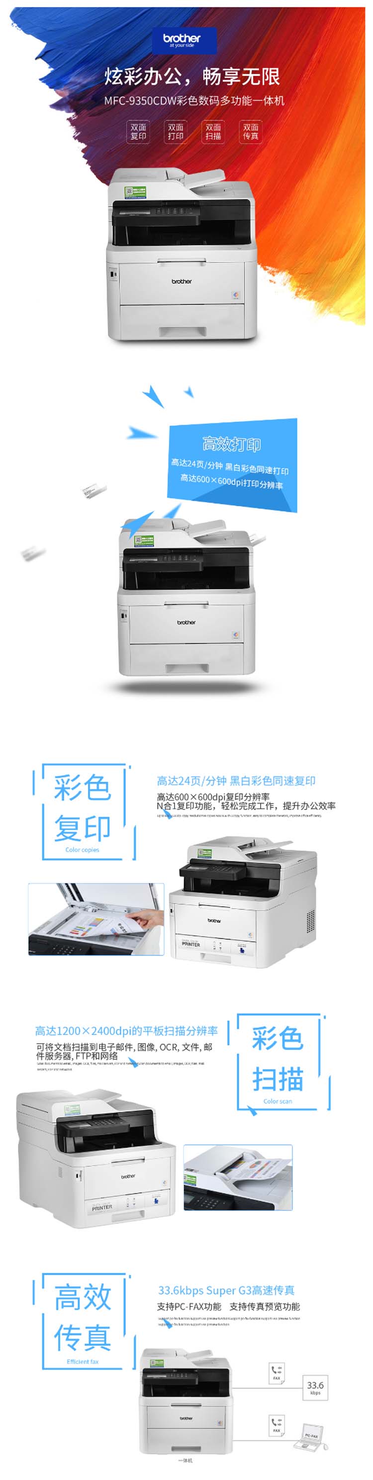 兄弟(brother)A4彩色激光打印机四合一(打印、复印、扫描)自动双面无线网络多功能一体机 MFC-9350CDW