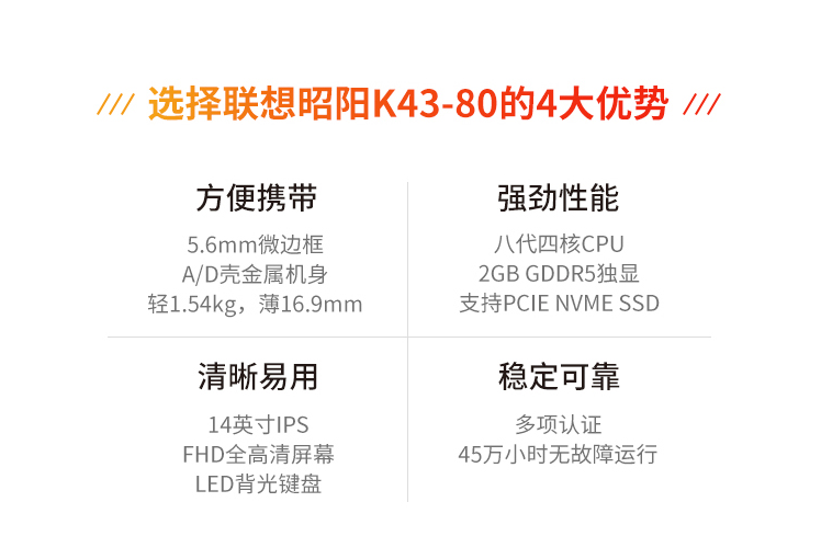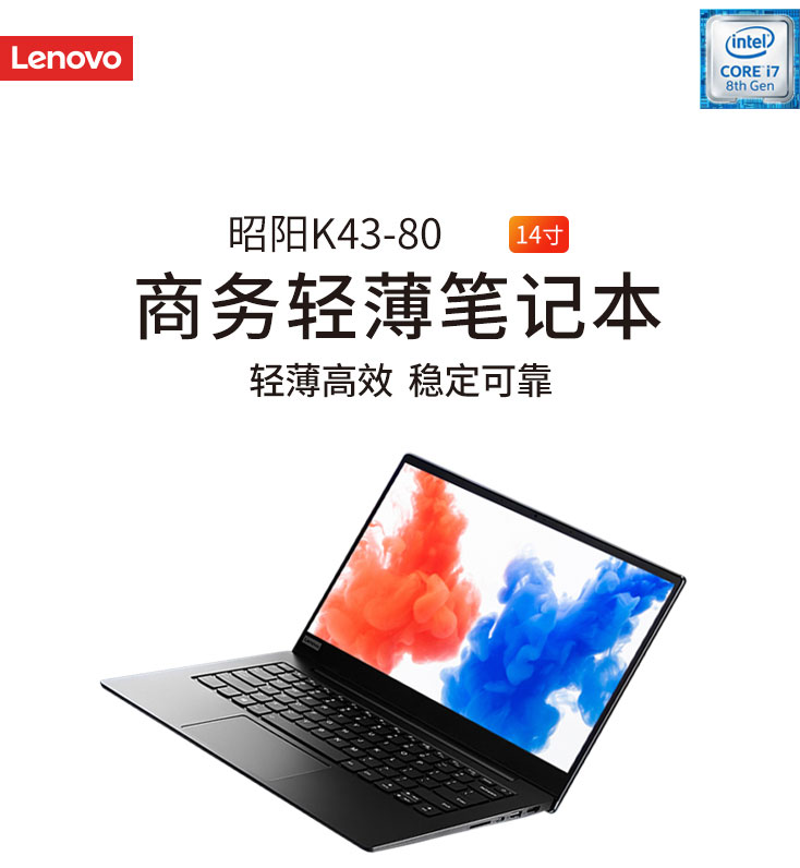 联想(Lenovo)昭阳K43-80 14英寸轻薄商务商用笔记本电脑微边框酷睿八代 i7-8550 8G 512G 2G WIN10 FHD高清