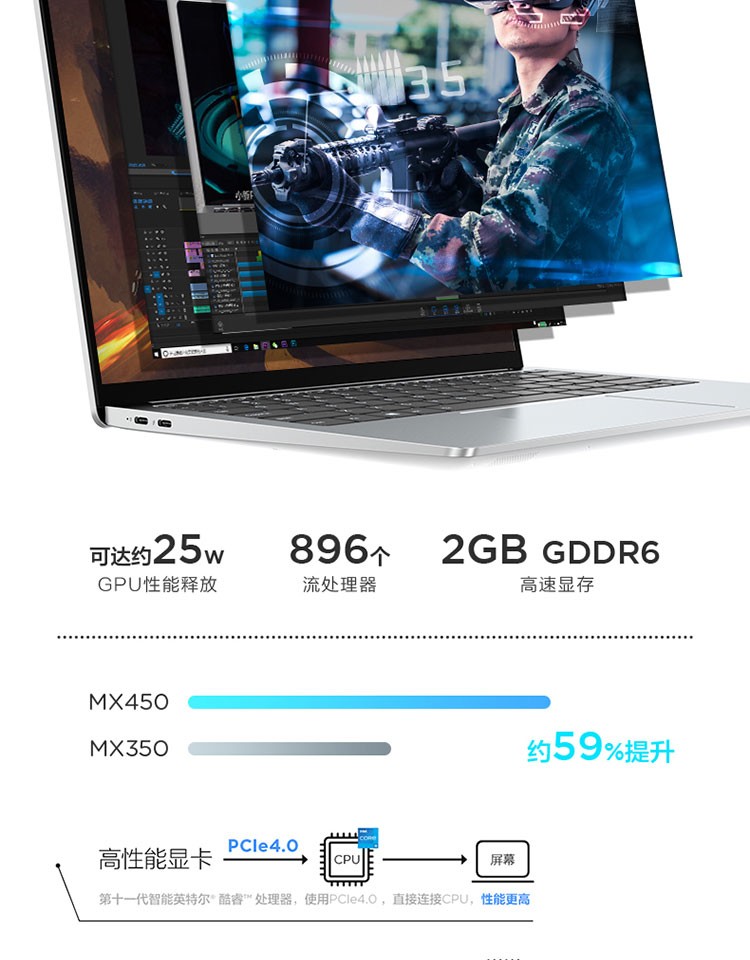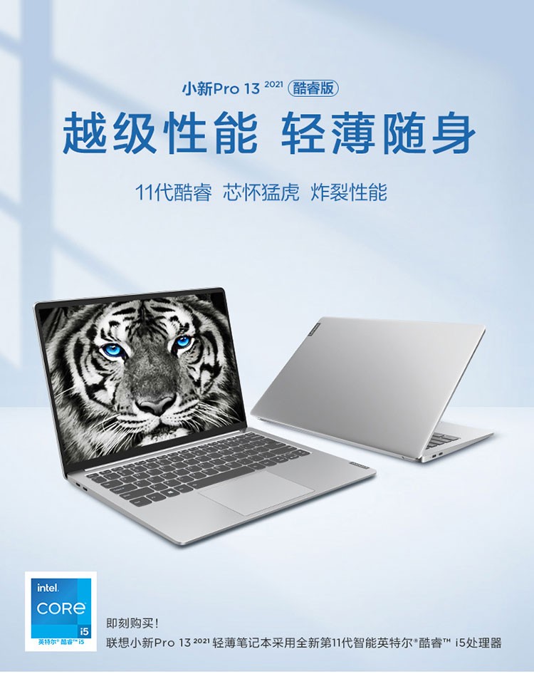 【2021款】联想小新Pro13 13.3英寸11代酷睿i5全面屏笔记本电脑 标配i5-1135G7 16G 512G固态MX450独显