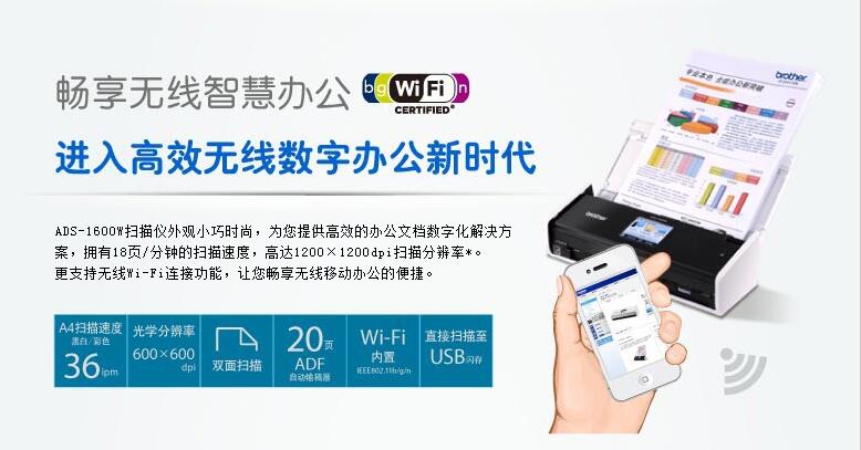 兄弟ADS-1600W无线网络馈纸式便携扫描仪证卡扫描