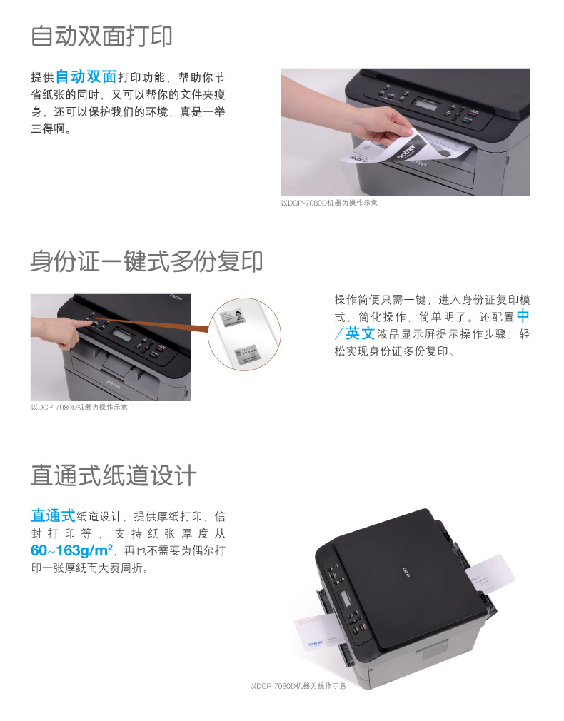 兄弟(brother)DCP-7180DN 黑白激光多功能一体机 打印、复印、扫描、自动双面打印、有线网络