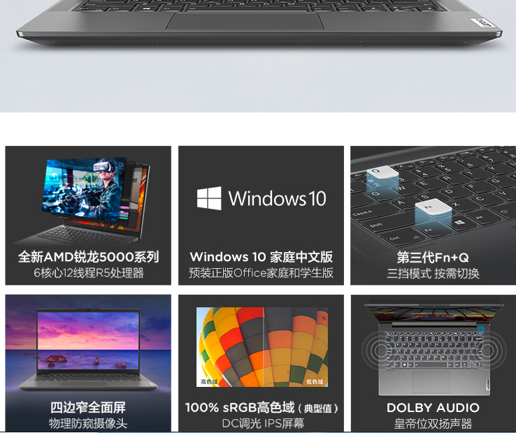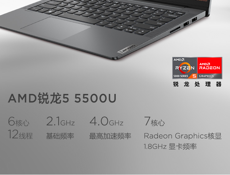 联想(Lenovo)小新Air14 2021锐龙版 14英寸便携式计算机 全面屏轻薄商用笔记本电脑 6核R5-5500U 16G 512G 高色域