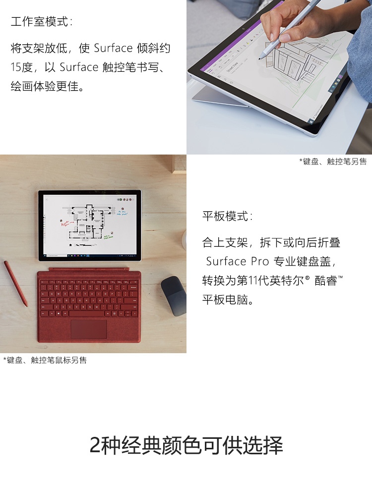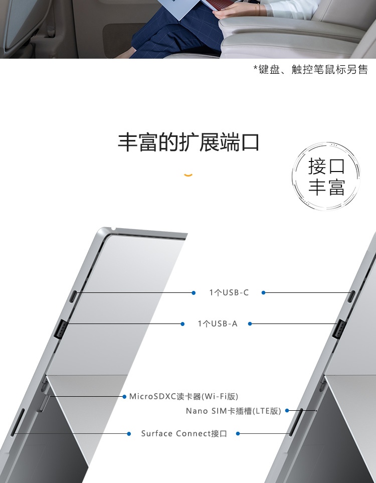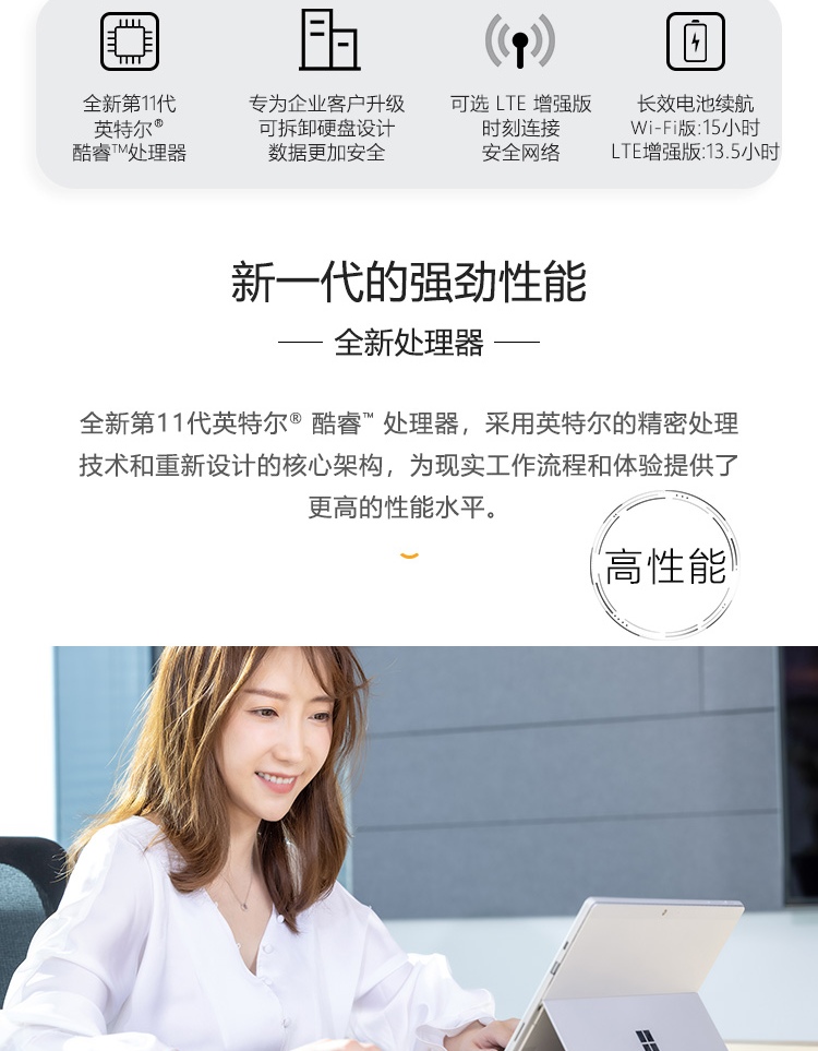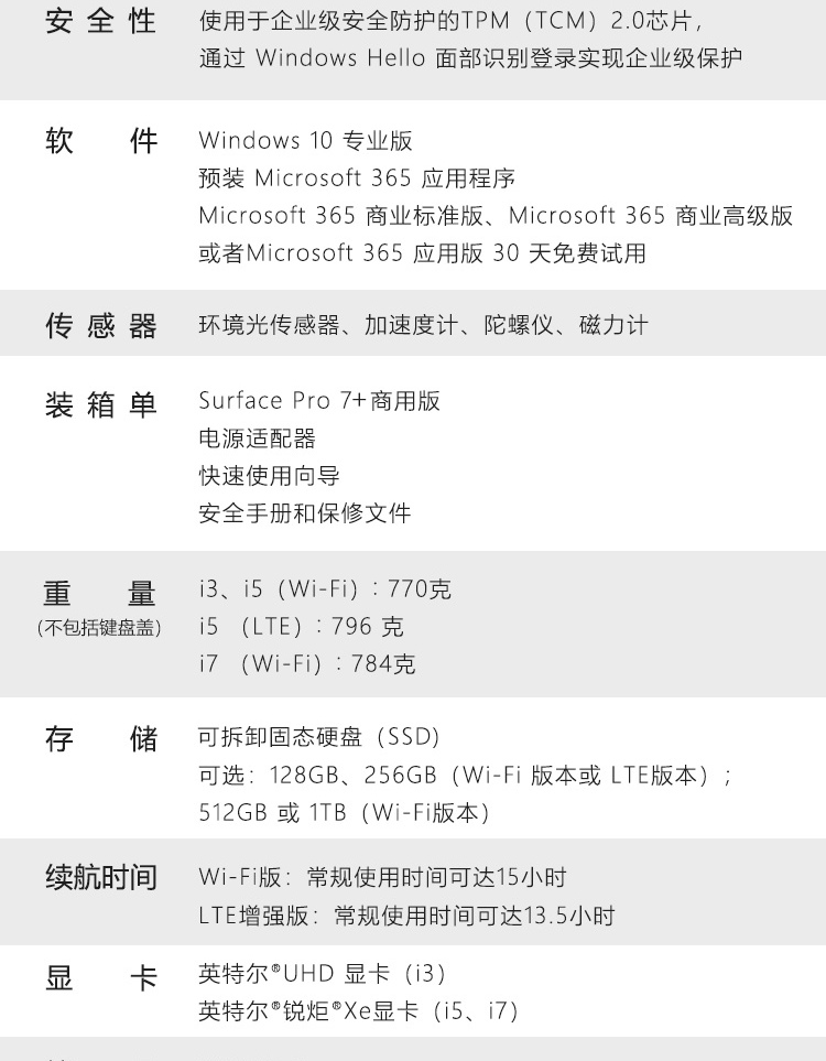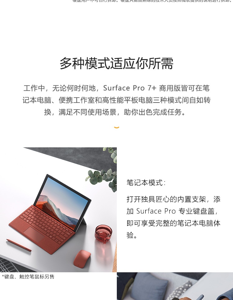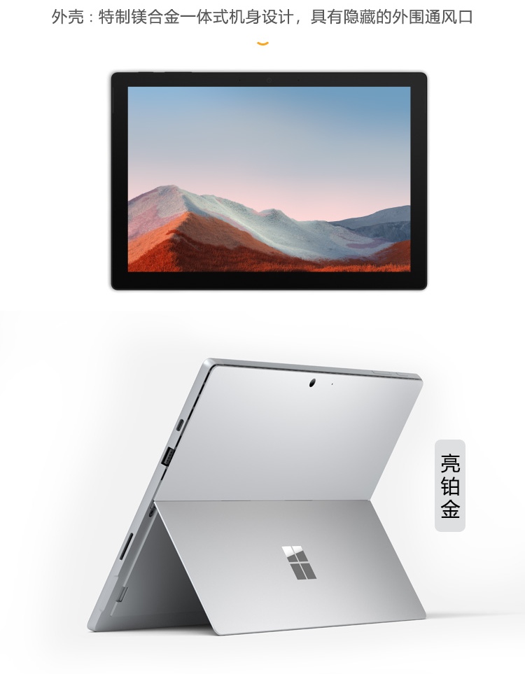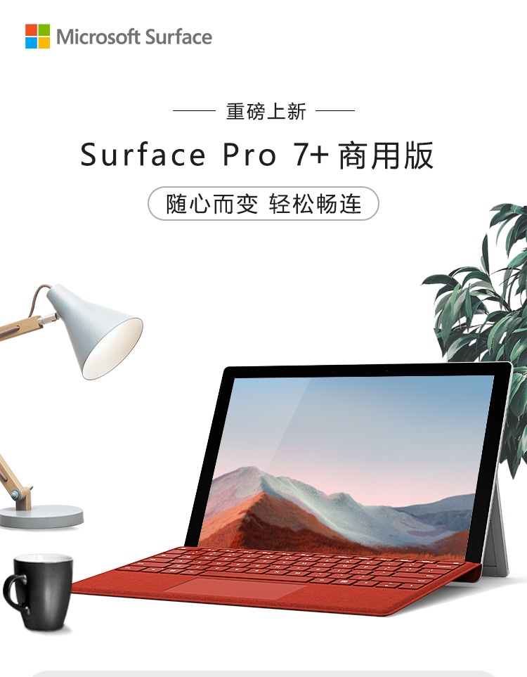 微软Surface Pro7+ 商用版 11代i7 1165G7 16G+1T 锐炬Xe 12.3英寸高色域 亮铂金