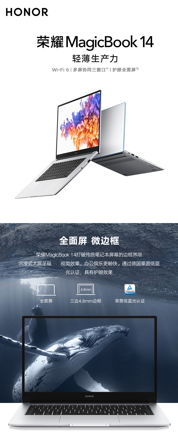荣耀magicbook 14-i5 16G 512G 集显 笔记本电脑2021款 全面屏 11代酷睿轻薄学生办公商务轻薄本手提超极本
