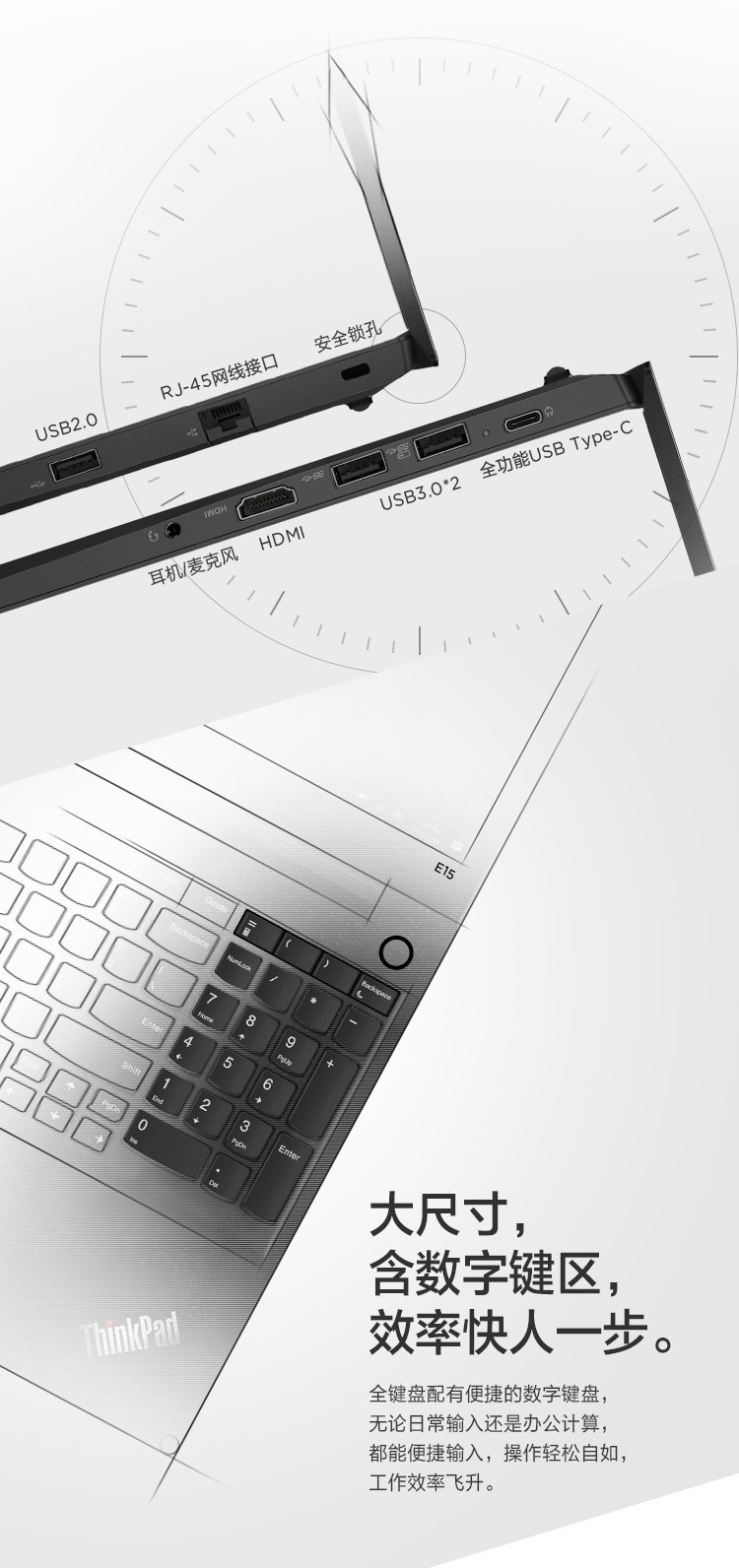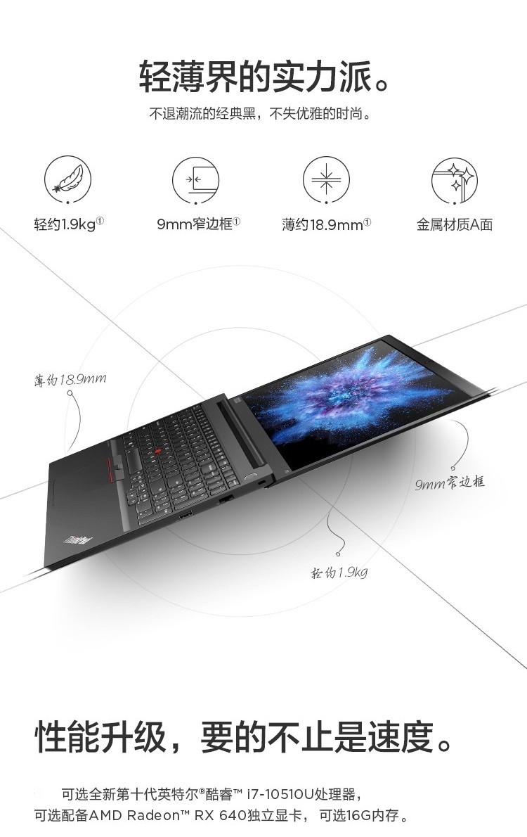 便携计算机 联想ThinkPad E15(0SCD)15.6英寸 笔记本电脑 RX625显卡 不带背光( i7-10510U 8G 256G+1T机械 硬盘)带包鼠