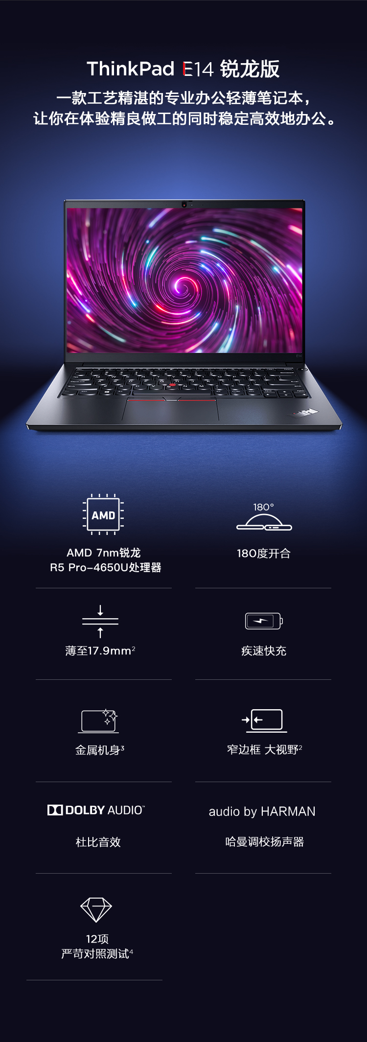 联想(Lenovo)ThinkPad E14-0DCD笔记本电脑 /14英寸锐龙 R5-4650u 8G 256G固态 双面金属W10系统带包鼠