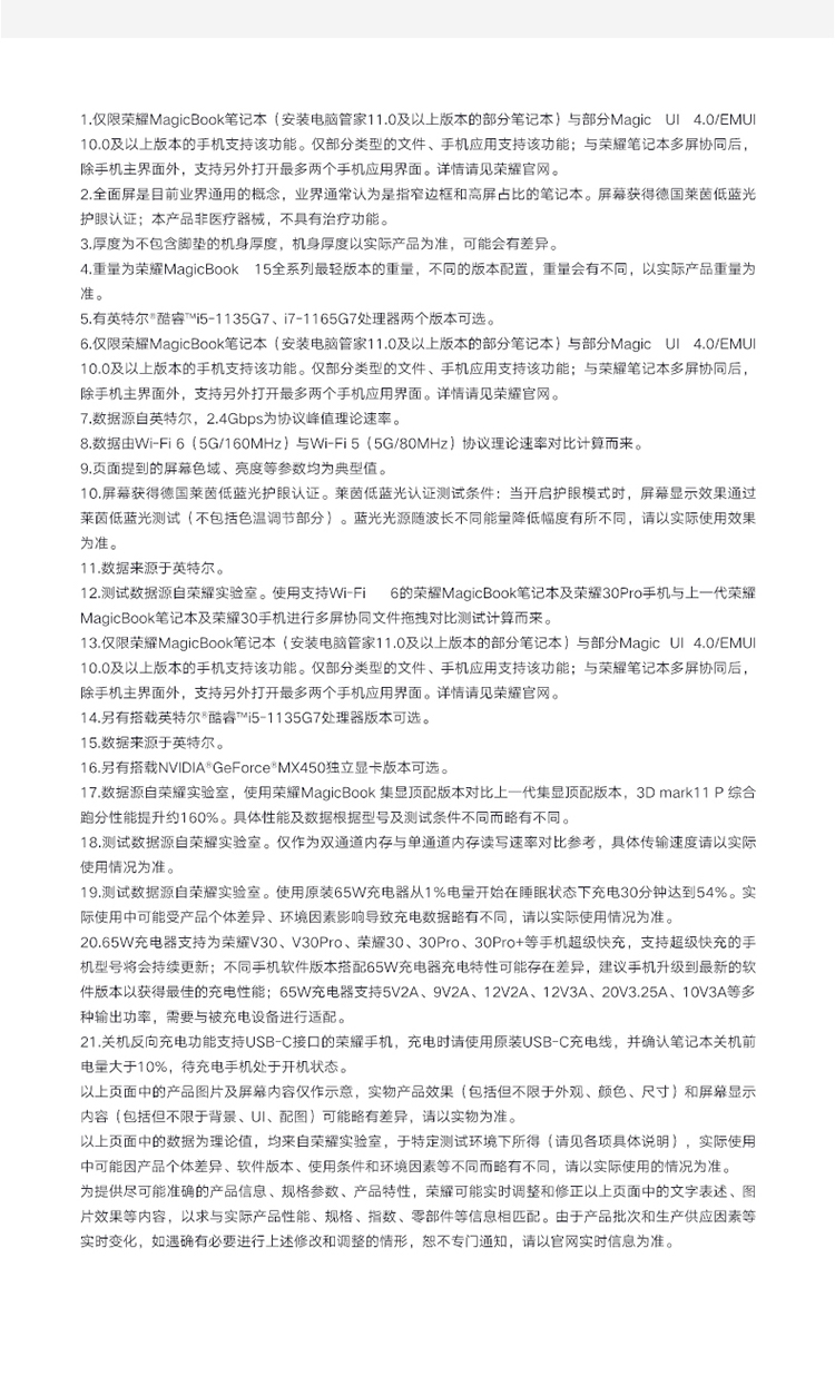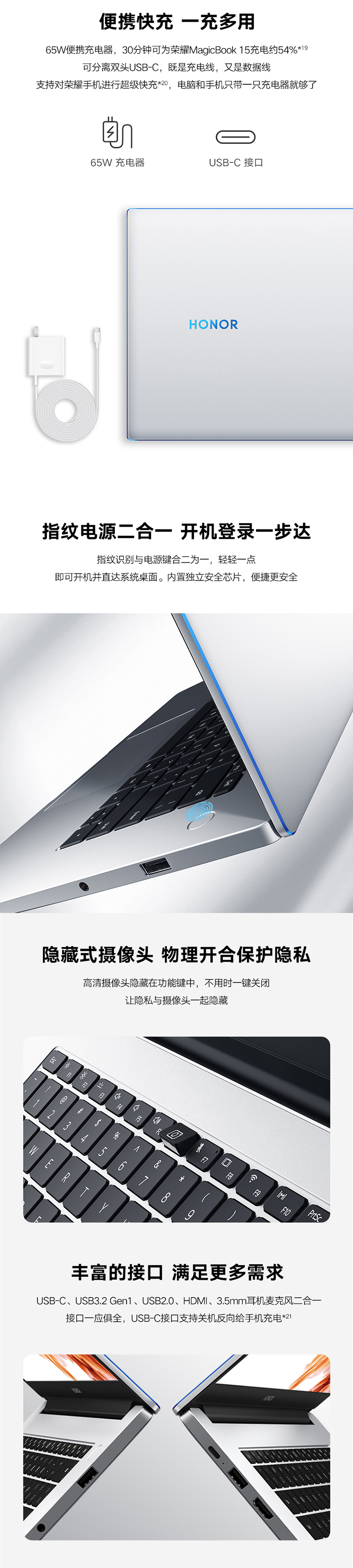 荣耀笔记本电脑MagicBook 15 2021款 轻薄本15.6英寸手提商务办公超薄超级本 银|i5十一代 16G 512G 集显 官方标配