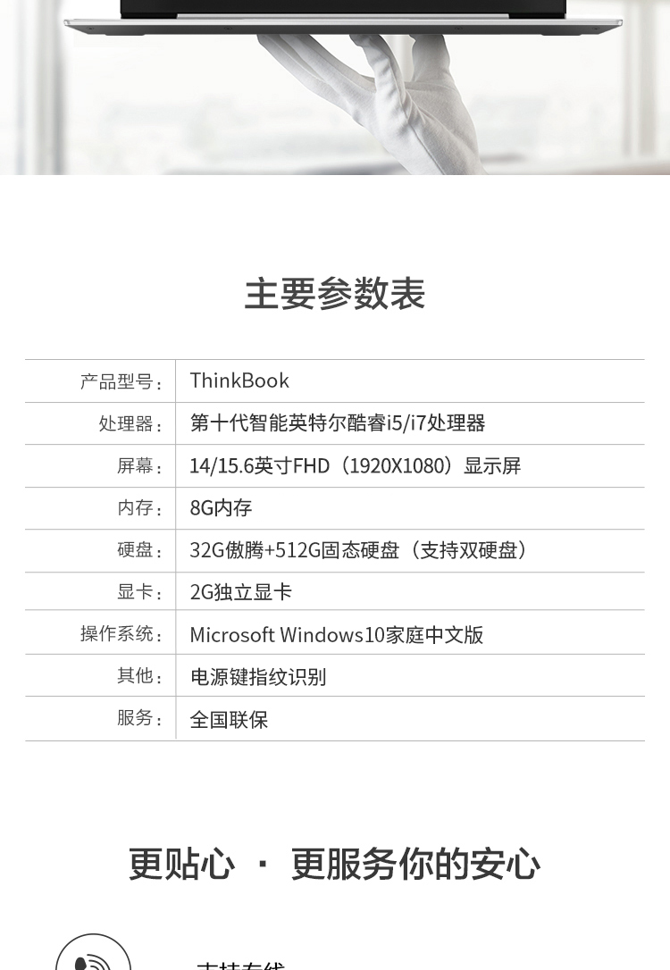 联想ThinkPad超轻薄本商务办公笔记本电脑 ThinkBook 14-28CD:14英寸高清屏 十代i7 指纹 32G内存 512G SSD带包,无线鼠标