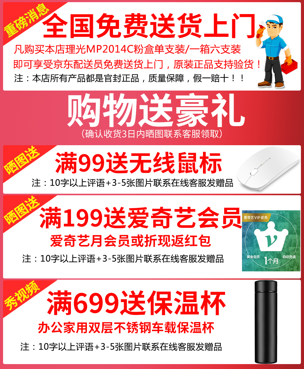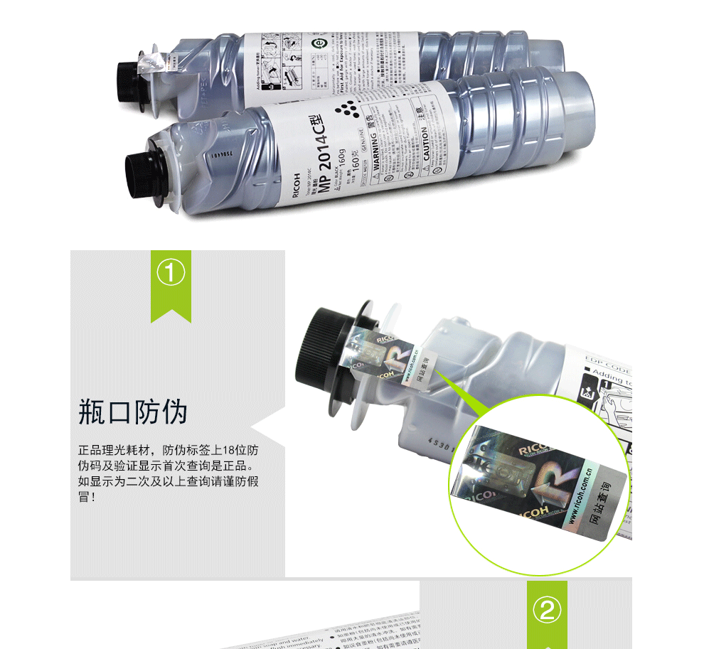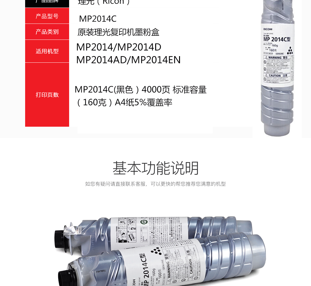 理光(RICOH)MP2014C碳粉原装黑色墨粉盒碳粉盒 适用于2014/2014D/2014AD 标准容量 MP 2014C墨粉盒单支装(4000页)
