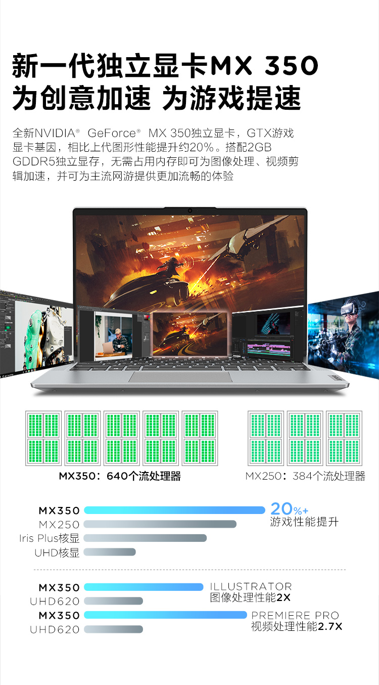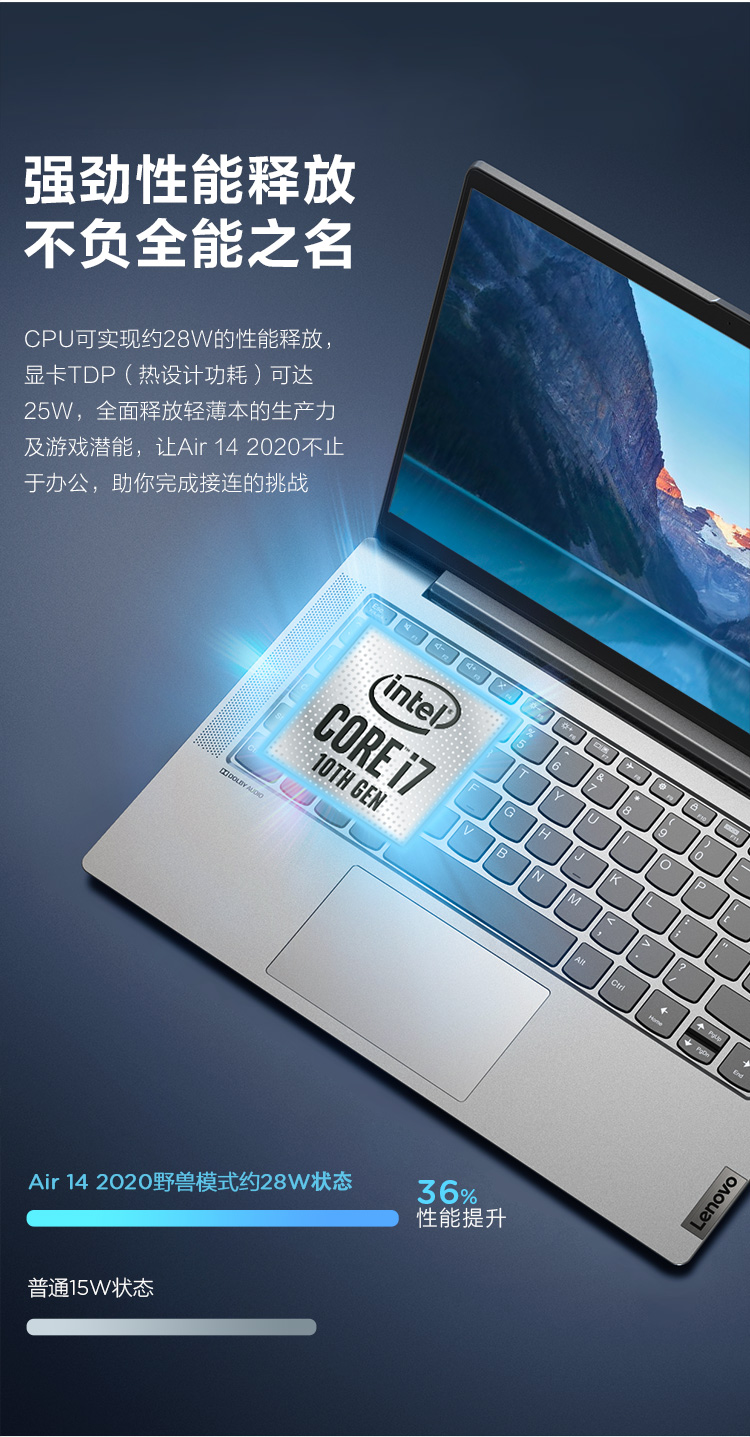 联想(Lenovo) 小新Air14 2020性能版 英特尔酷睿i5 全面屏独显轻薄笔记本电脑(i5 16G 512G MX350 100%sRGB)银