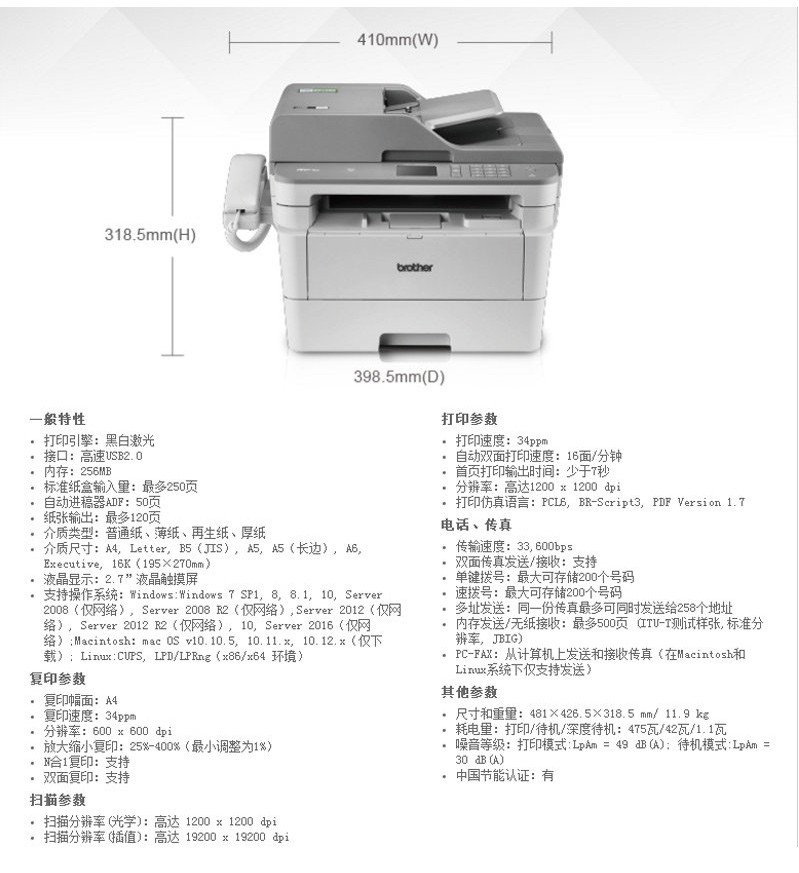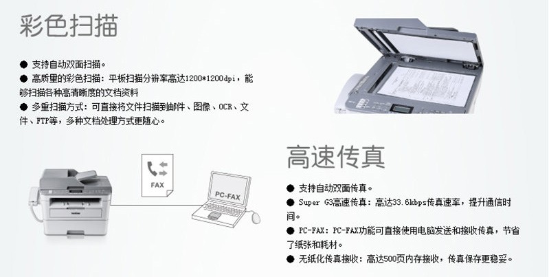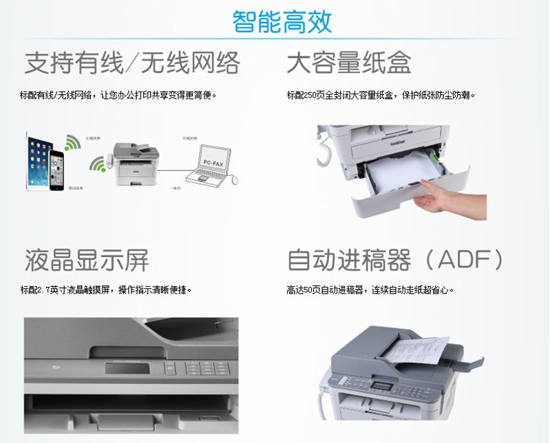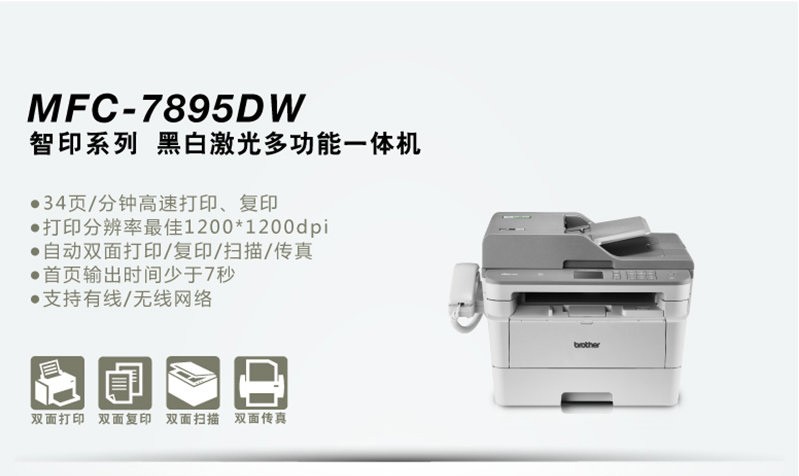 兄弟MFC-7895DW A4黑白激光多功能一体机 自动双面打印复印扫描传真 无线网络 官方标配