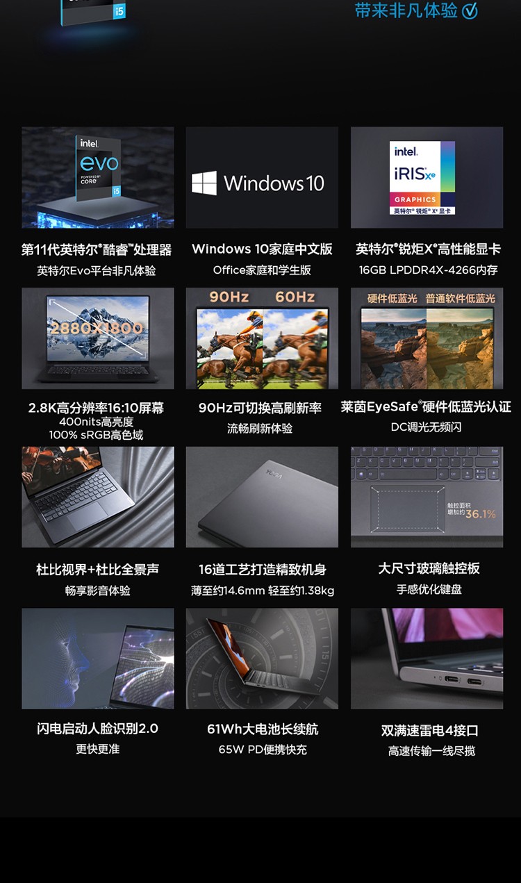 联想lenovo YOGA14s 笔记本电脑 2021款11代酷睿i514英寸 标配 i5-1135G7 16G 512G固态 90Hz刷新率 锐炬X显卡 英特尔Evo平台