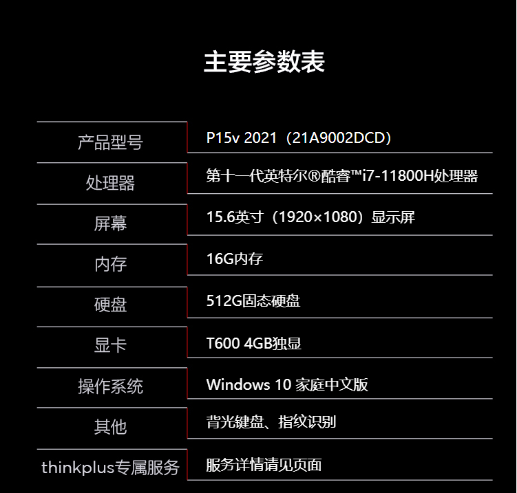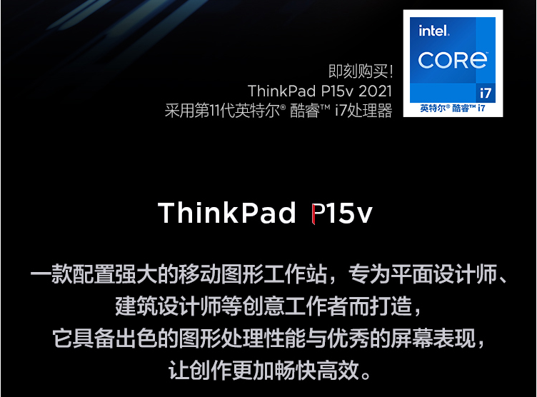 联想笔记本电脑ThinkPad P15v(2DCD)英特尔酷睿15.6英寸高性能设计师工作站 i7-11800H 16G 512G T600 高色域