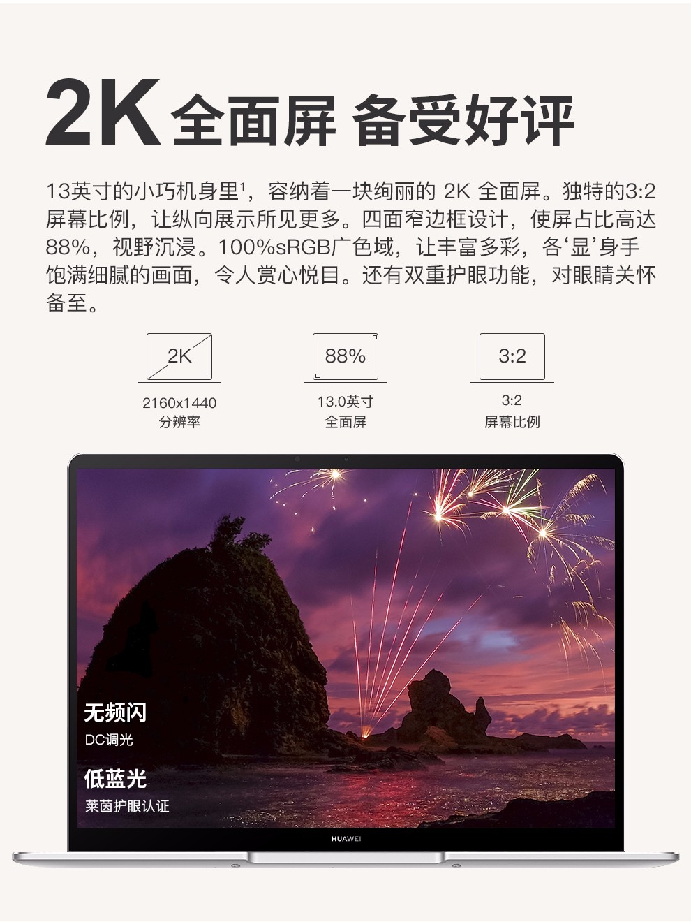 华为笔记本电脑MateBook13 皓月银|R5-4600H 16G 512 固态