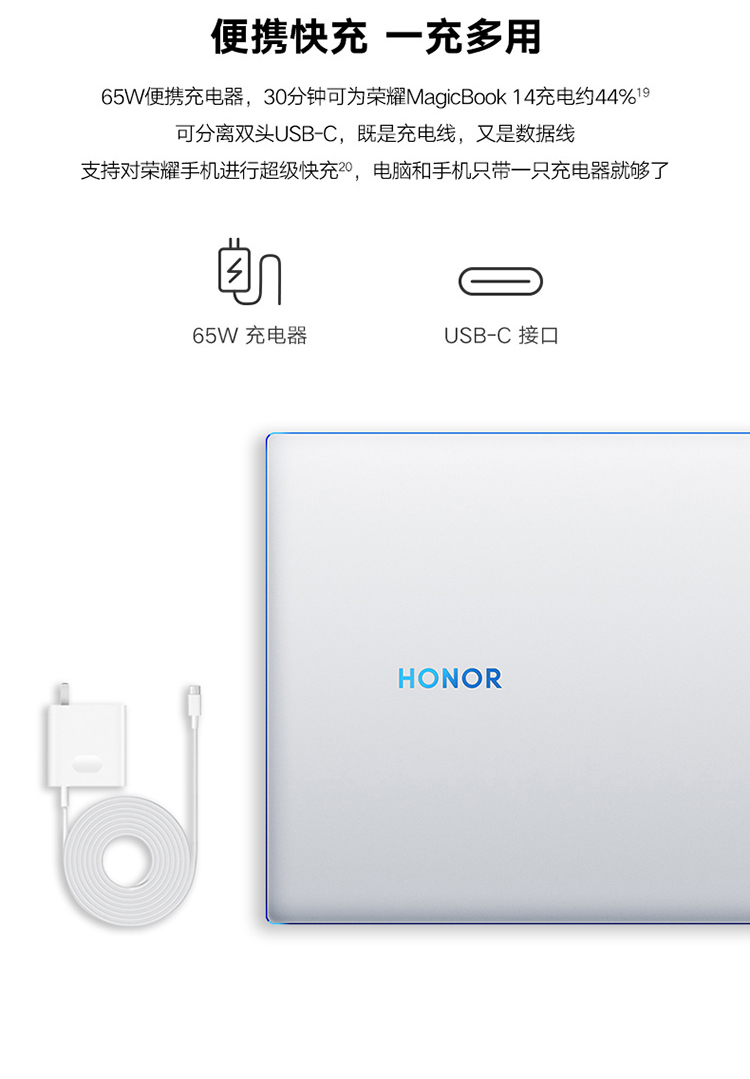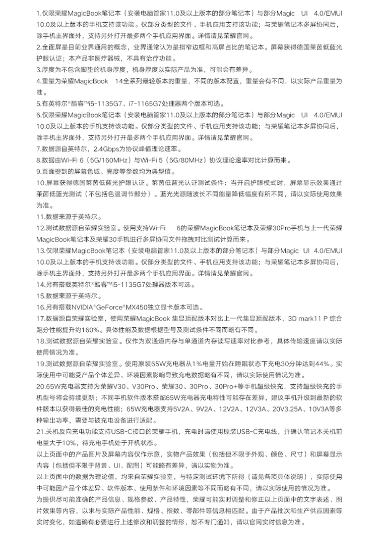 HONOR荣耀笔记本MagicBook14 i7-1165G7 16G 512G独显 2021款11代轻薄本学生商务办公笔记本电脑 14.0