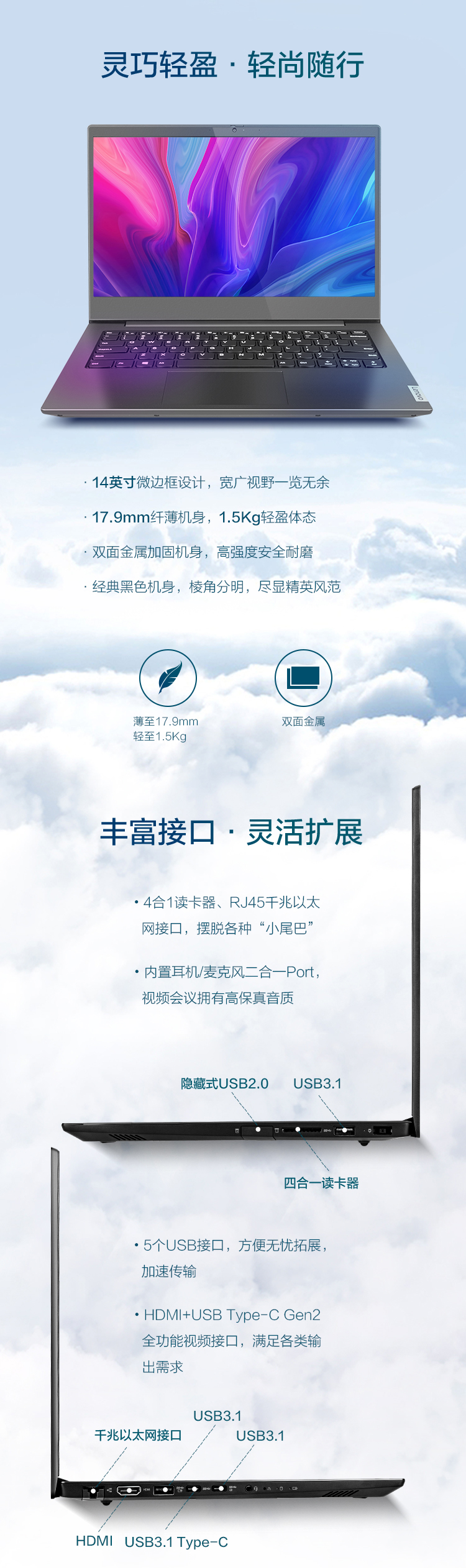 便携式计算机 联想K4e-IIL 14英寸英特尔酷睿i5笔记本电脑 配置:i5-1035G4/8G/128G SSD+1T/集显/Win10