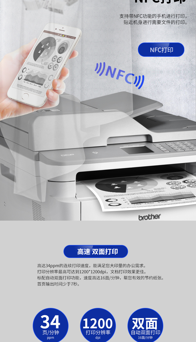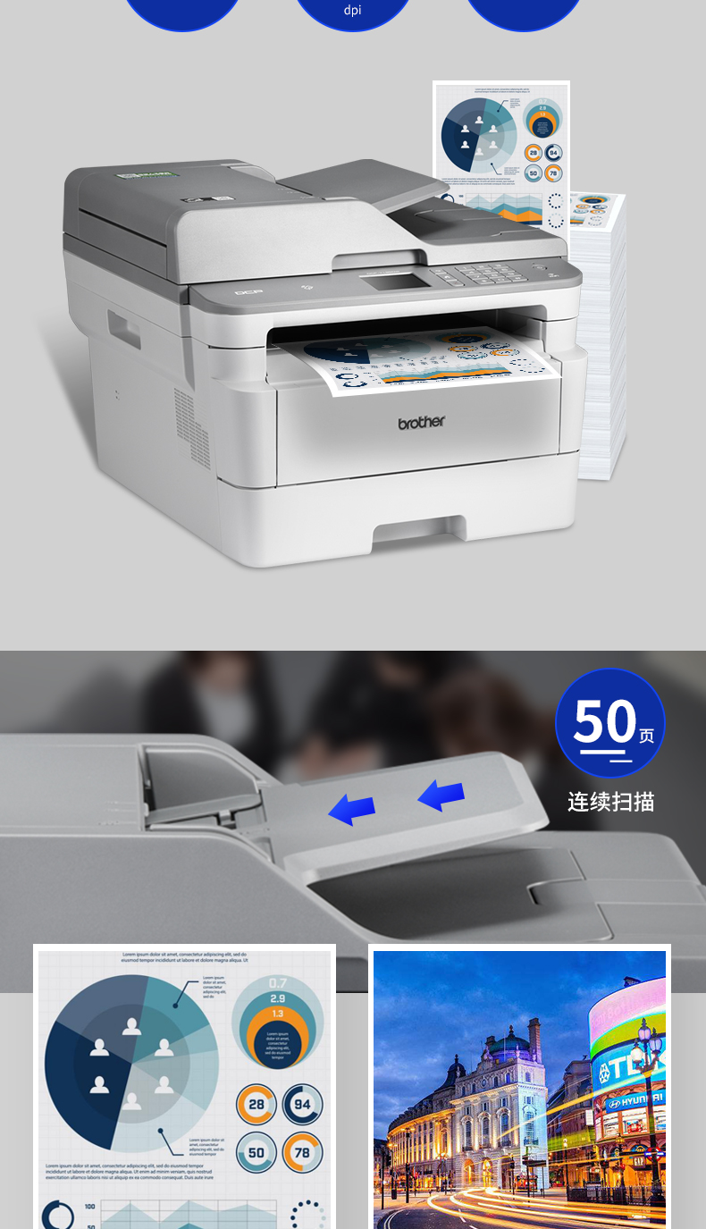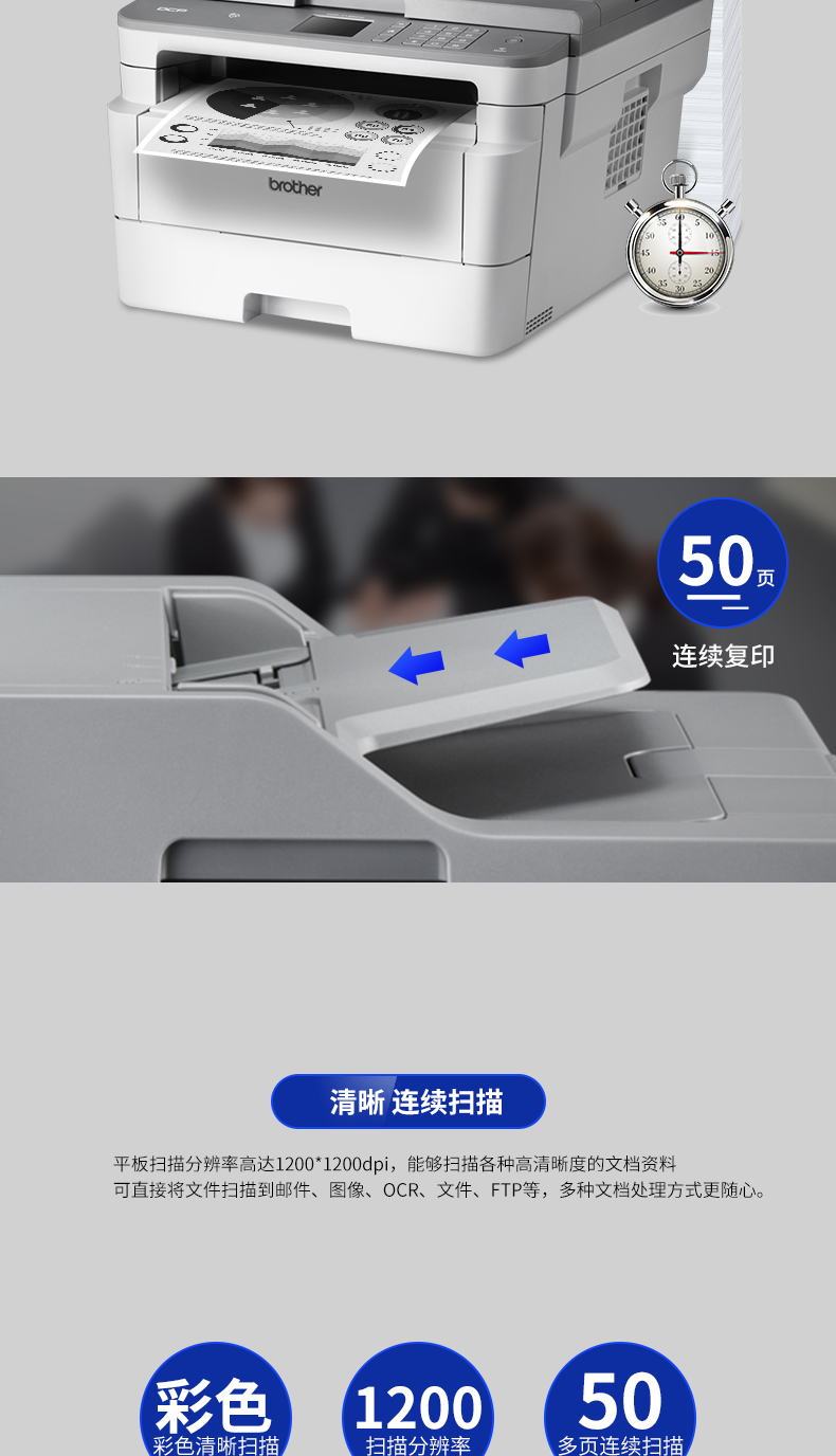兄弟(brother)DCP-7195DW 黑白激光多功能一体机打印复印扫描双面无线网络家用办公 DCP-7195DW标配(三合一)