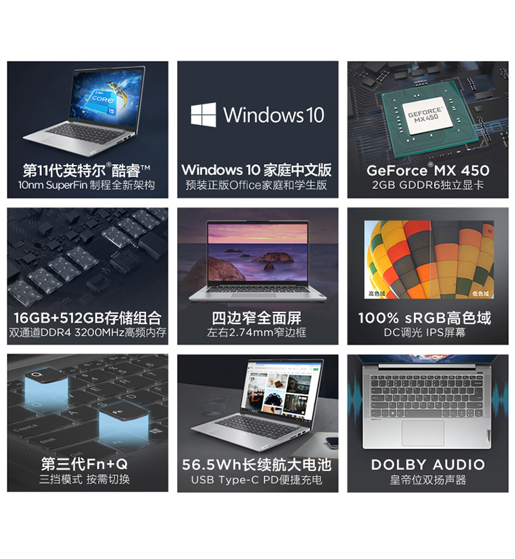 联想 Lenovo 小新Air14 2021款性能轻薄本 英特尔酷睿i5 全面屏笔记本电脑 i5-1135G7 16G 512G MX450独显 银