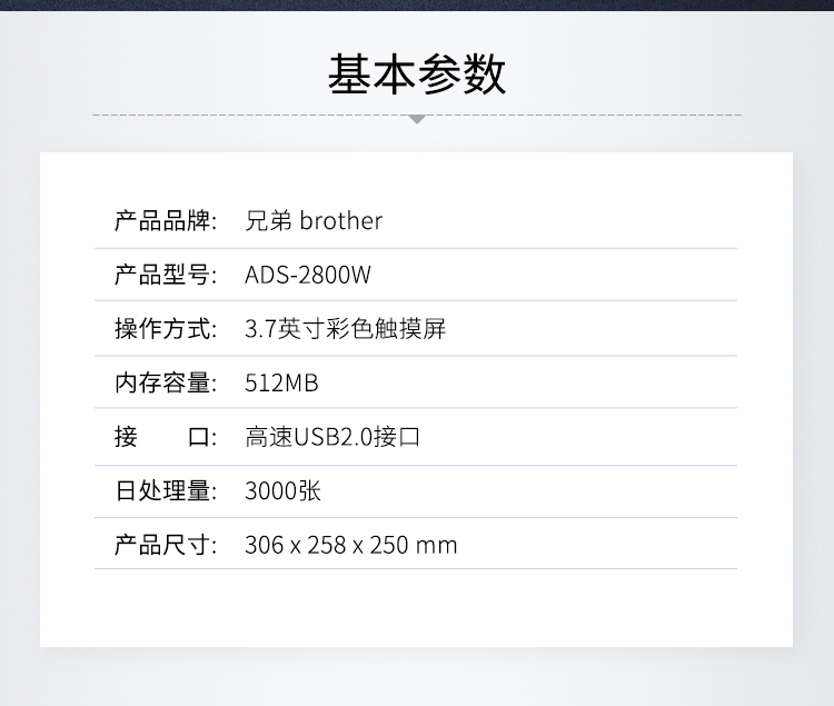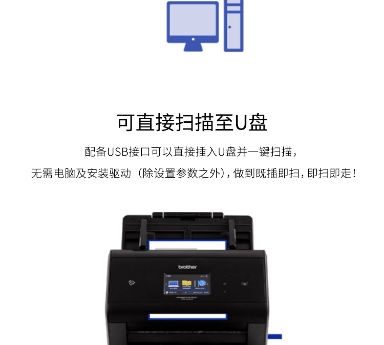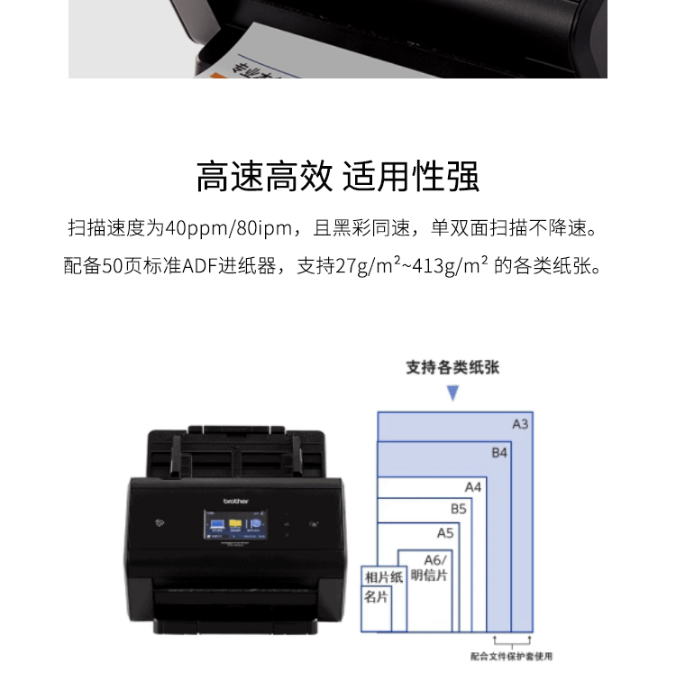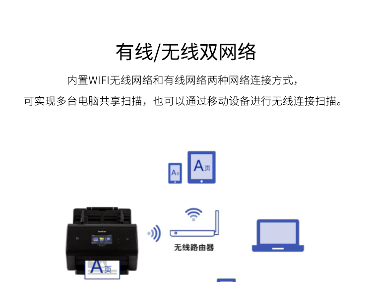 兄弟(brother)ADS-2800W 扫描仪 双网络触屏扫描仪 内置WIFI