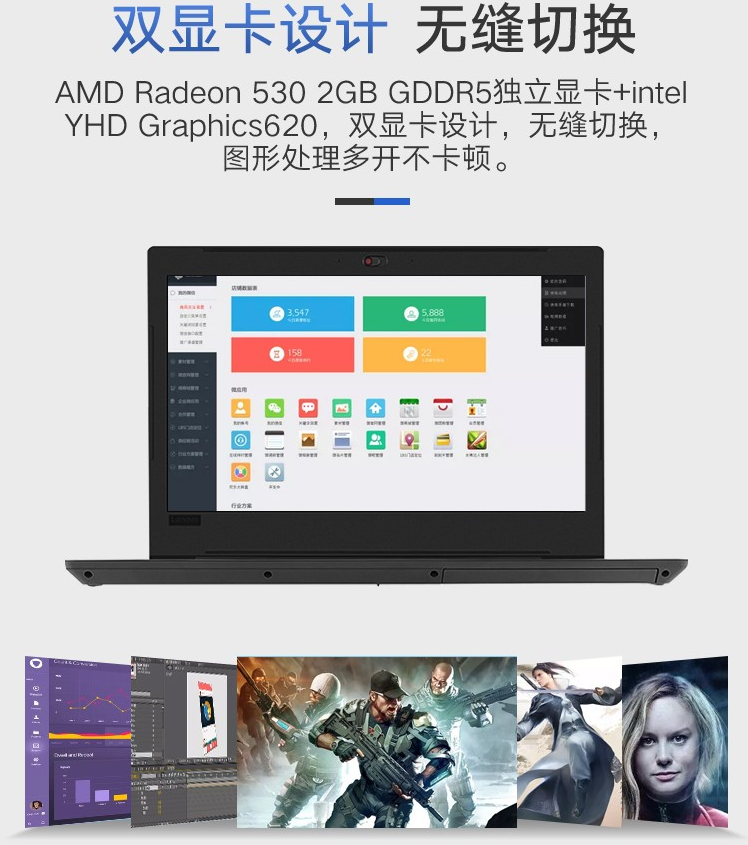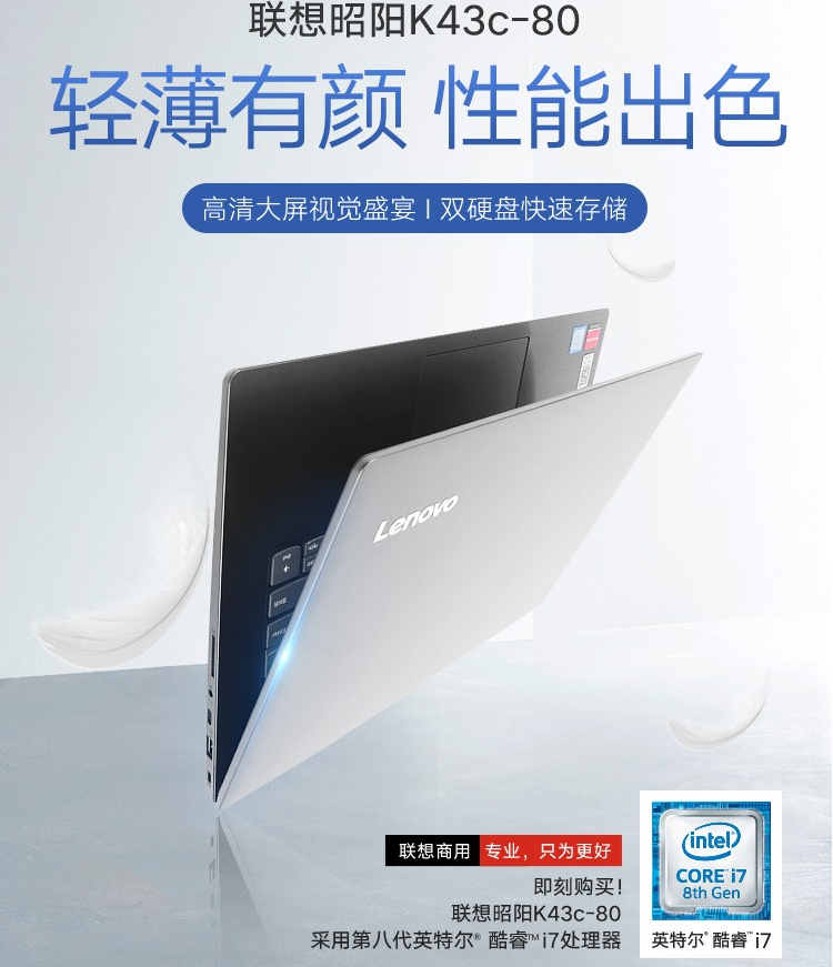 联想(lenovo)昭阳K43c-80 14.0英寸商用办公笔记本电脑i5酷睿八代支持win7 i5-8250U 4G内存 1T机械 W10 2G独