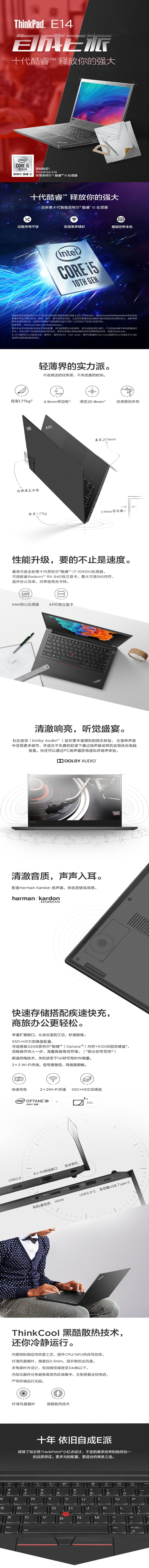 联想Thinkplus E14 便携式计算机 20RA002JCD英特尔酷睿i5 14英寸笔记本电脑 i5-10210U 8G 512GSSD RX640独显 FHD 黑