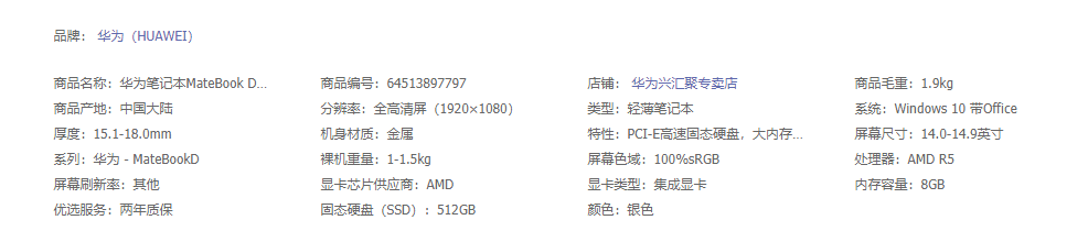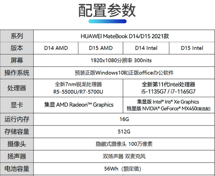 华为笔记本MateBooD14 2021款 锐龙版 R5 8G+512G集显/Intel全面屏轻薄本