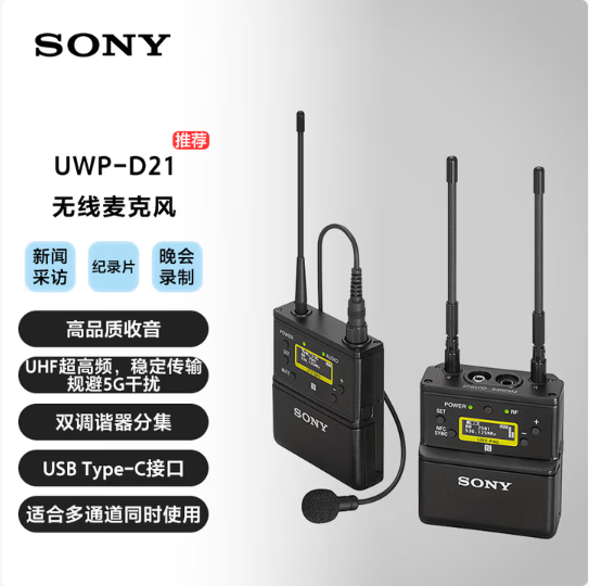 索尼/SONY UWP-D21=K29 麦克 领夹式无线麦克风 新频段 小蜜蜂 一拖一 专业录音收音