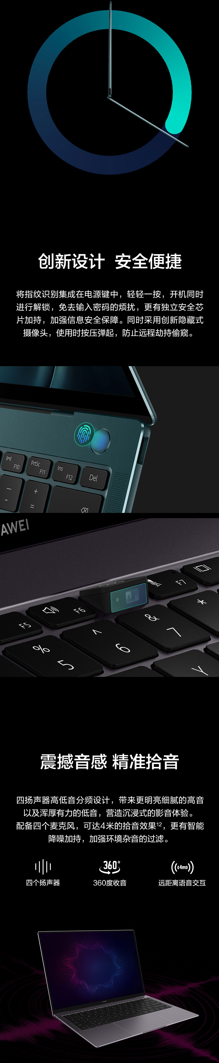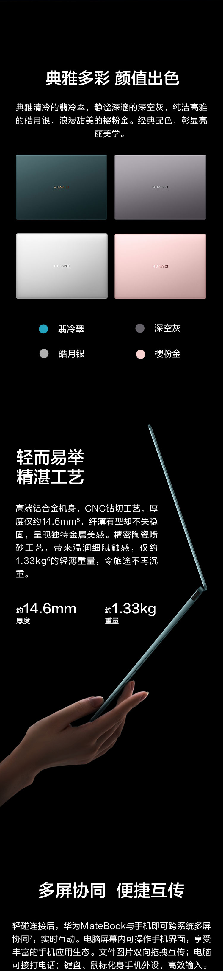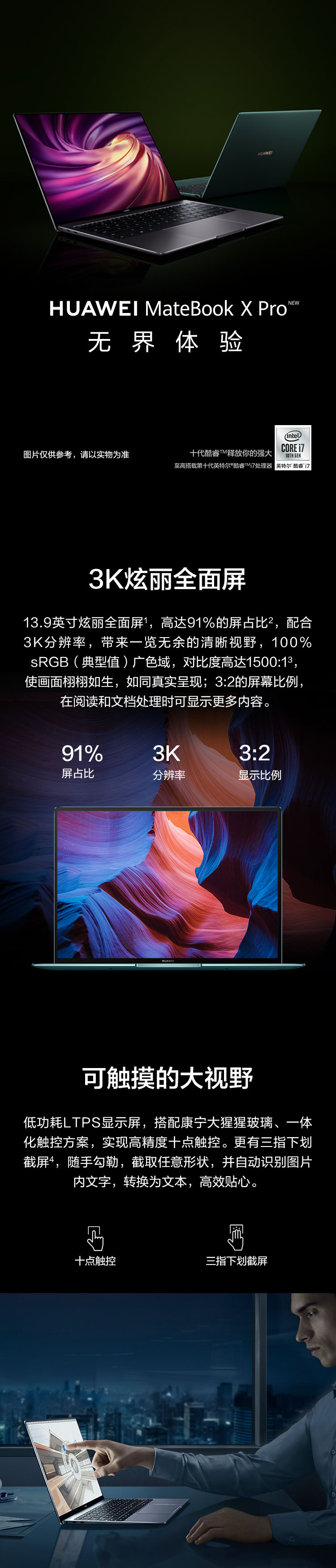 华为笔记本电脑 MateBook X Pro 2020款 13.9英寸 十代酷睿i7 16G+1T SSD 独显 3K触控全面屏/轻薄本 深空灰