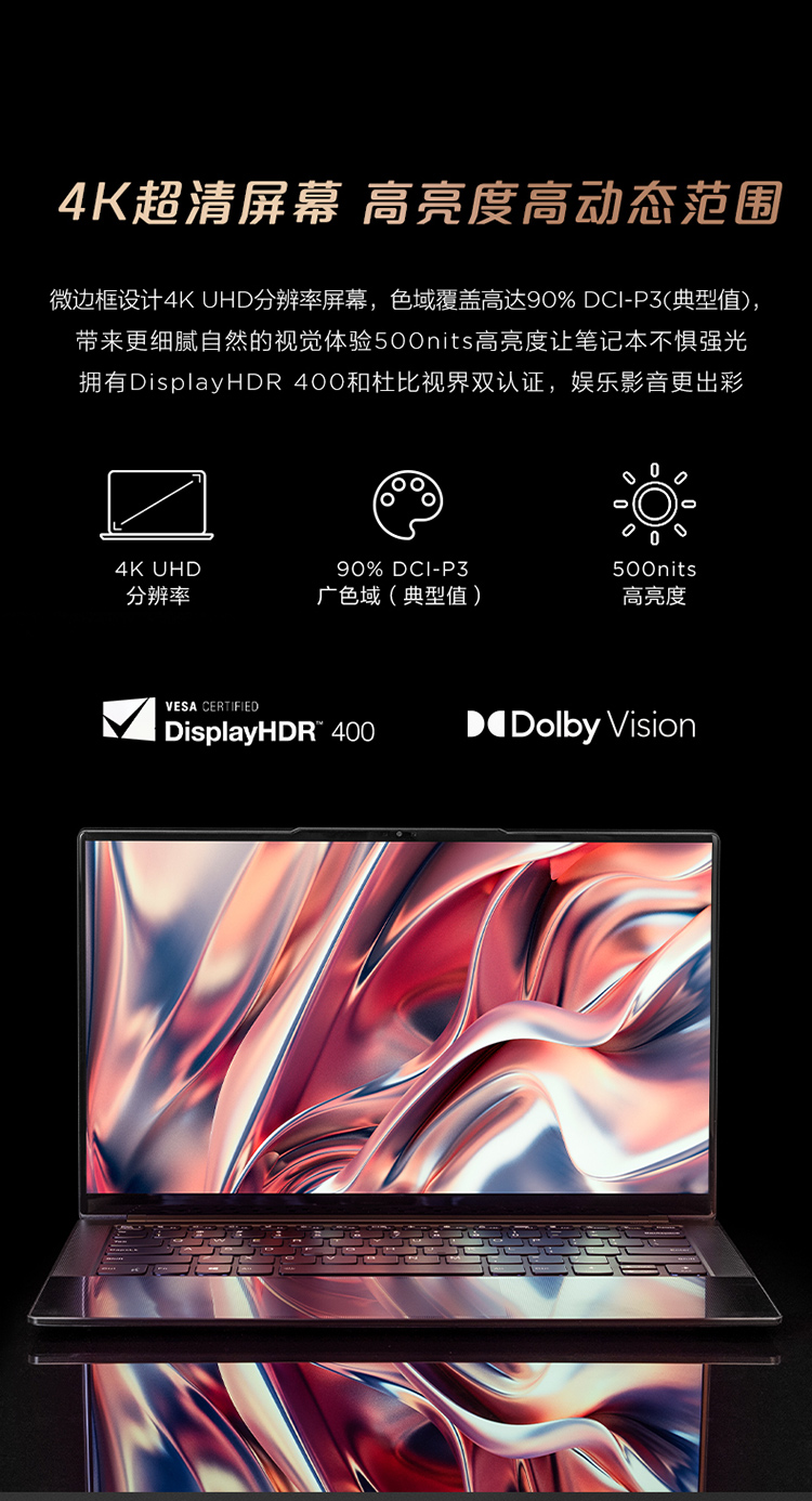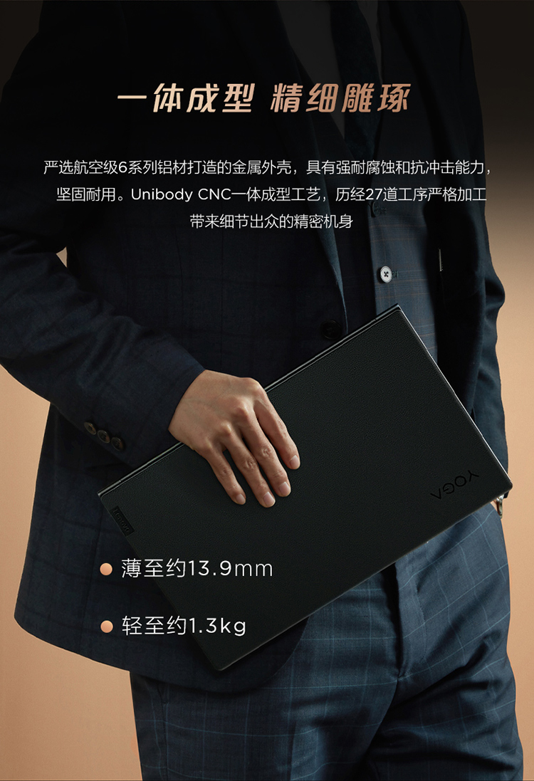 联想 Lenovo YOGA Pro14s 英特尔Evo平台 全面屏超轻薄笔记本电脑 i7-1165G7 16G 1TB 3D弧面触控屏 黑色皮革