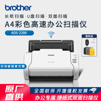 兄弟 brother 2200高速馈纸式办公扫描仪A4自动双面有线网U盘无线WIFI批量 ADS-2200U盘