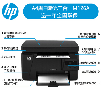 惠普(HP)打印机M126/136a/w/nw A4黑白激光打印复印扫描多功能一体机家用办公 M126a三合一【仅USB连接】