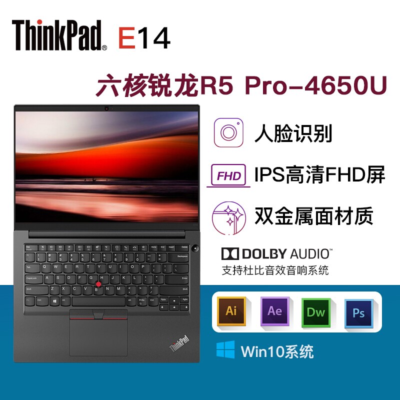 联想(Lenovo)ThinkPad E14-0DCD笔记本电脑 /14英寸锐龙 R5-4650u 8G 256G固态 双面金属W10系统带包鼠
